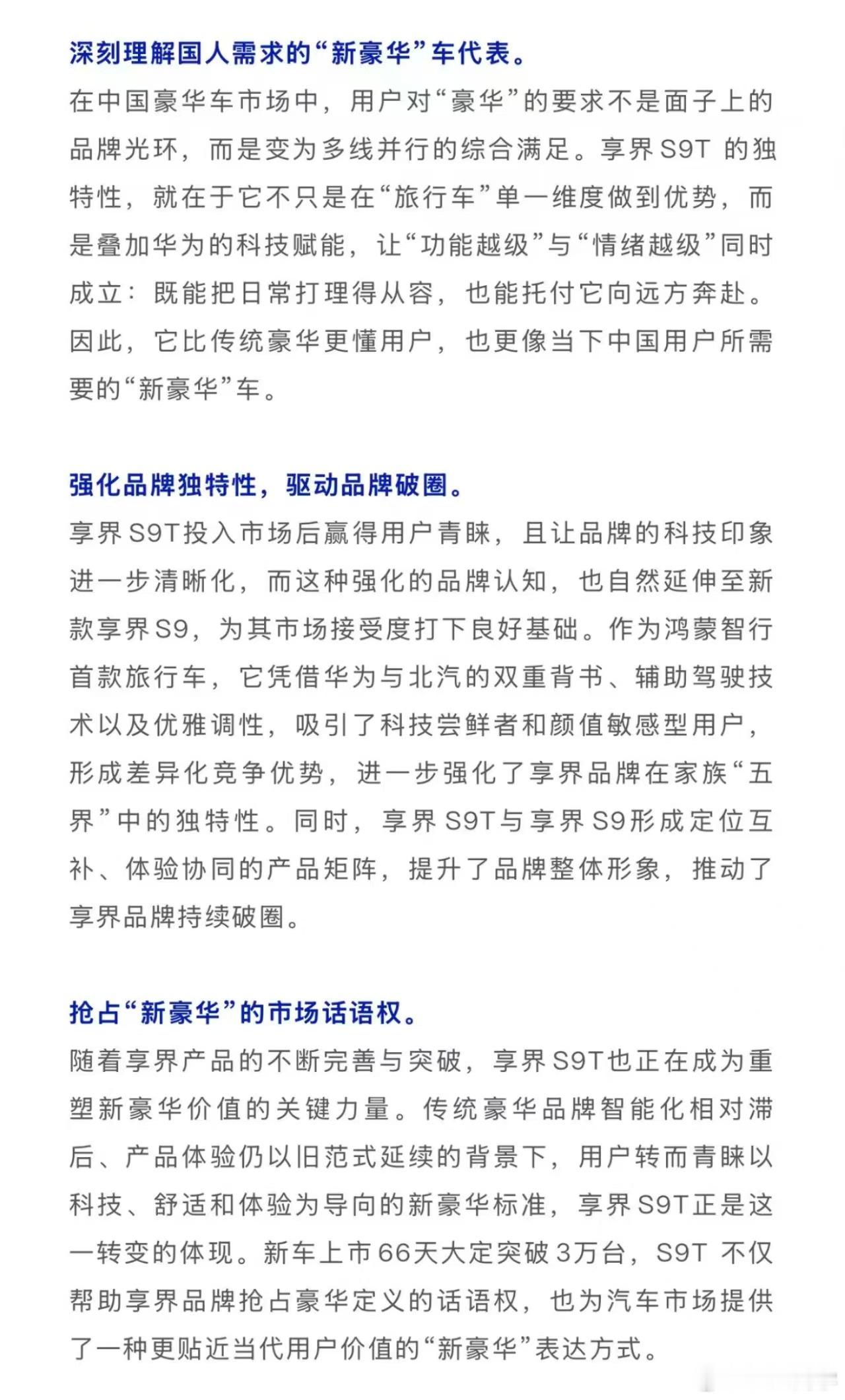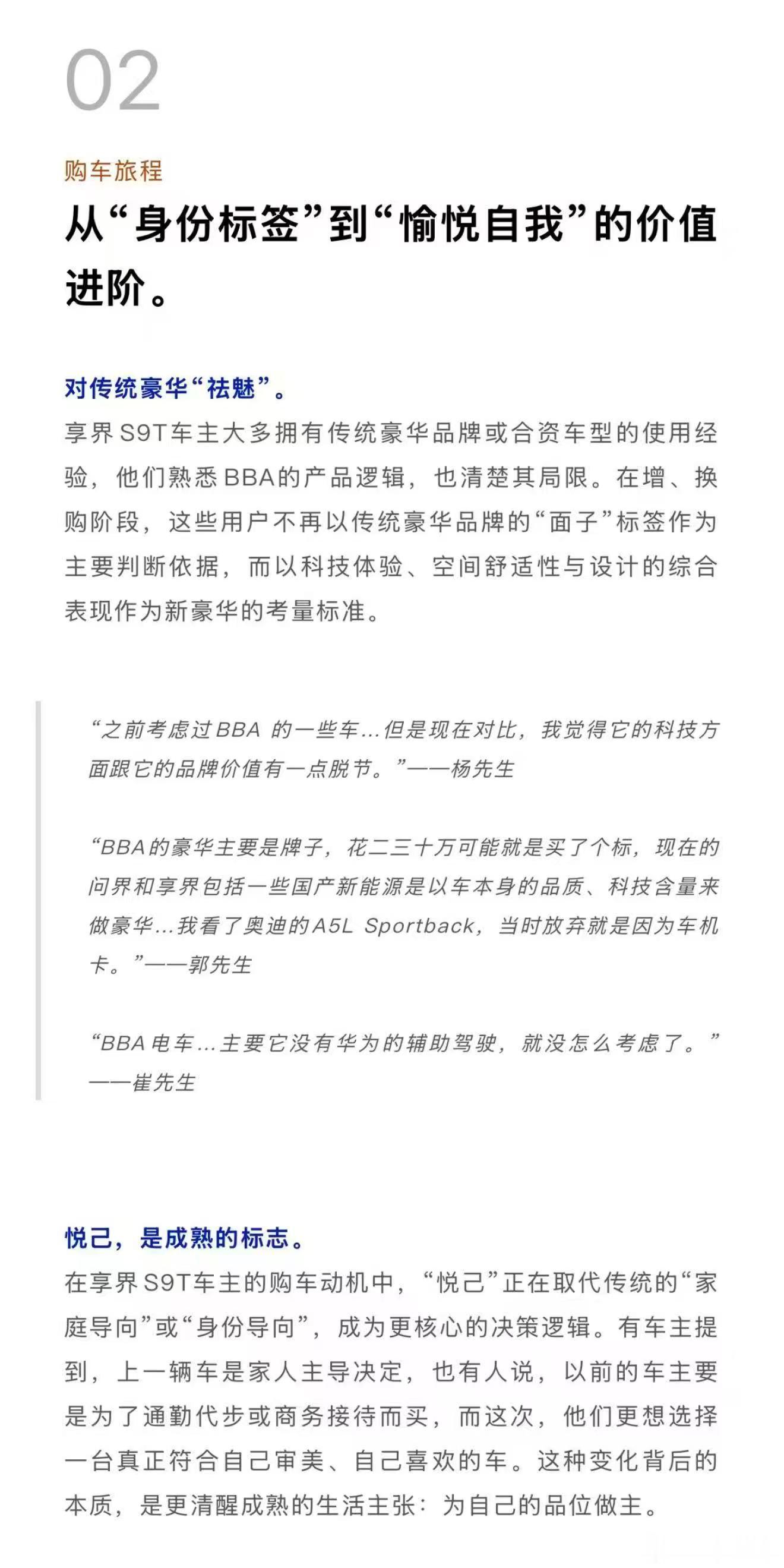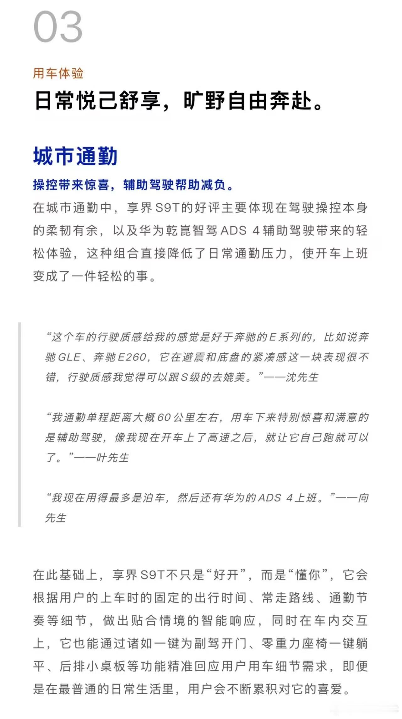 以后叫哥,理性精英,OK?什么人在买旅行车 呢?汽车行业调研机构杰兰路最新报告指出,享界S9T首批车主大多为从容自洽、追求生活质感的理性精英,始于颜值,忠于悦己,归于从容,享界S9T让他们日常悦己舒享,旷野自由奔赴,把生活过成自己想要的样子。