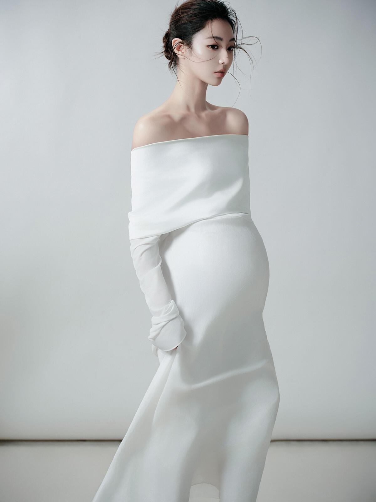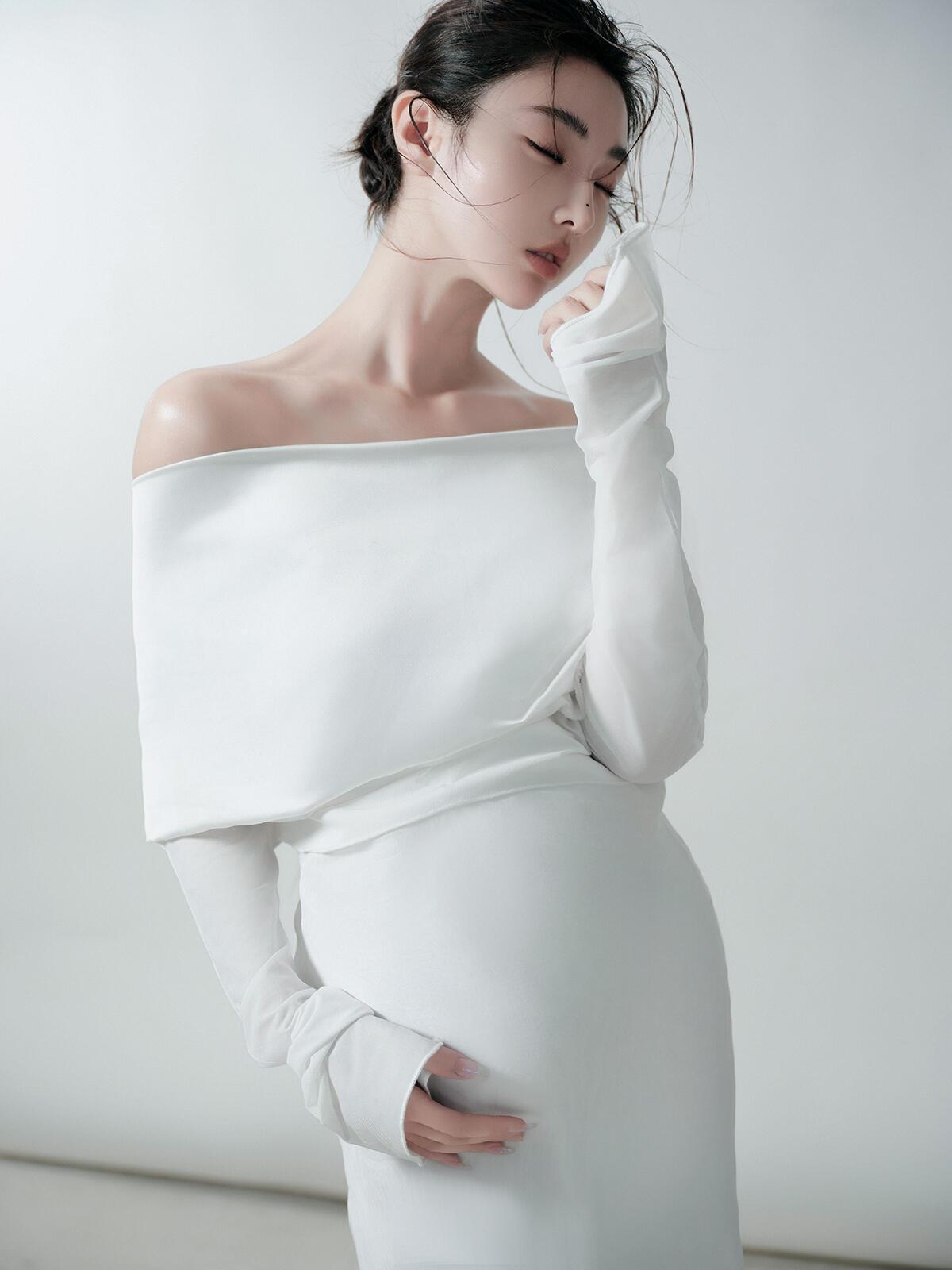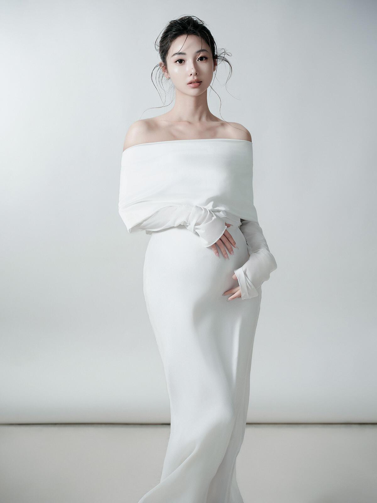 留白的温柔里,藏着生命悄然生长的弧度。 - 松弛的发梢、垂坠的纱袖,把期待裹进一身月光白。 - 每一帧光影,都是与新心跳的温柔共振。 . 冬日生活打卡季