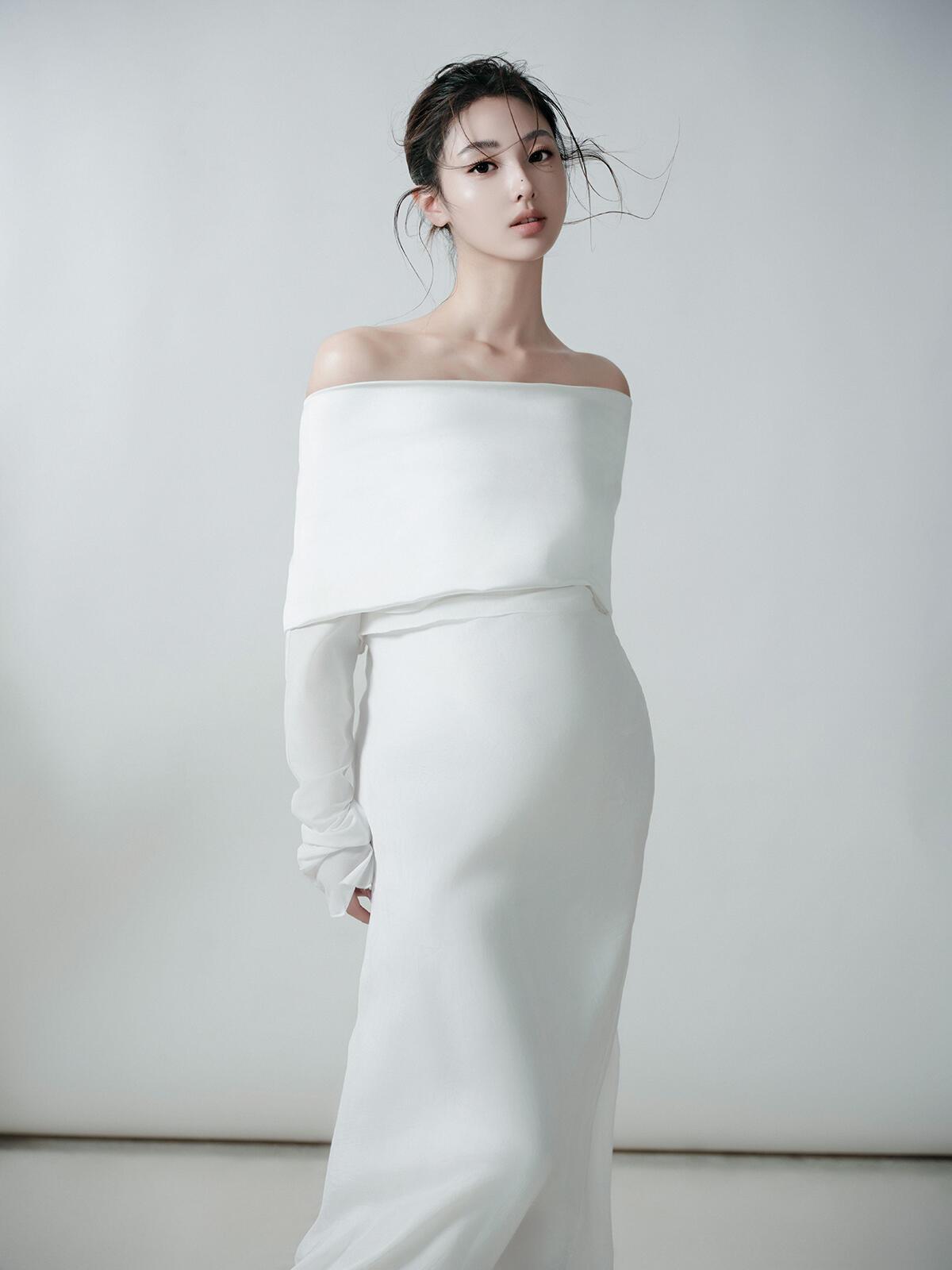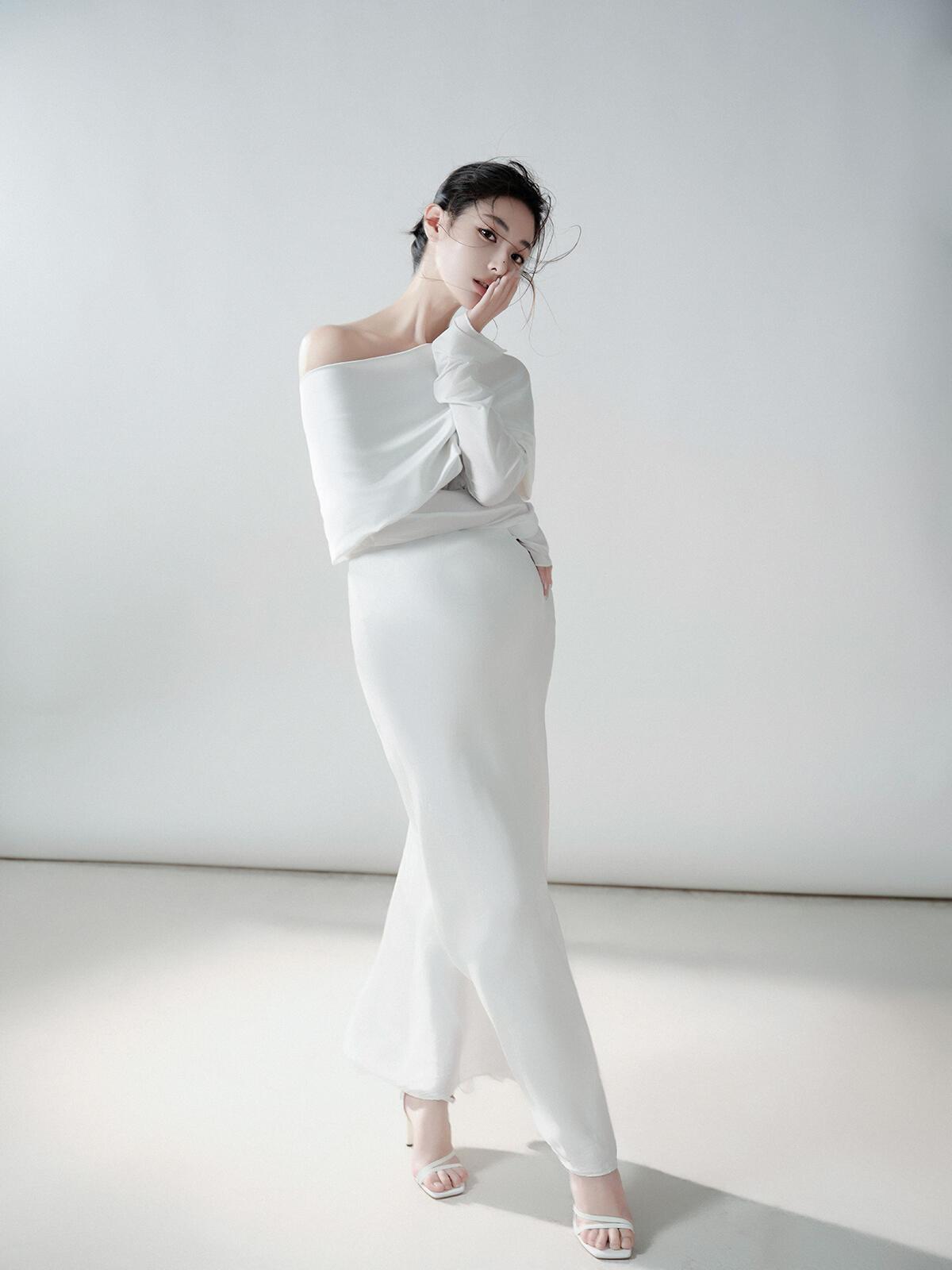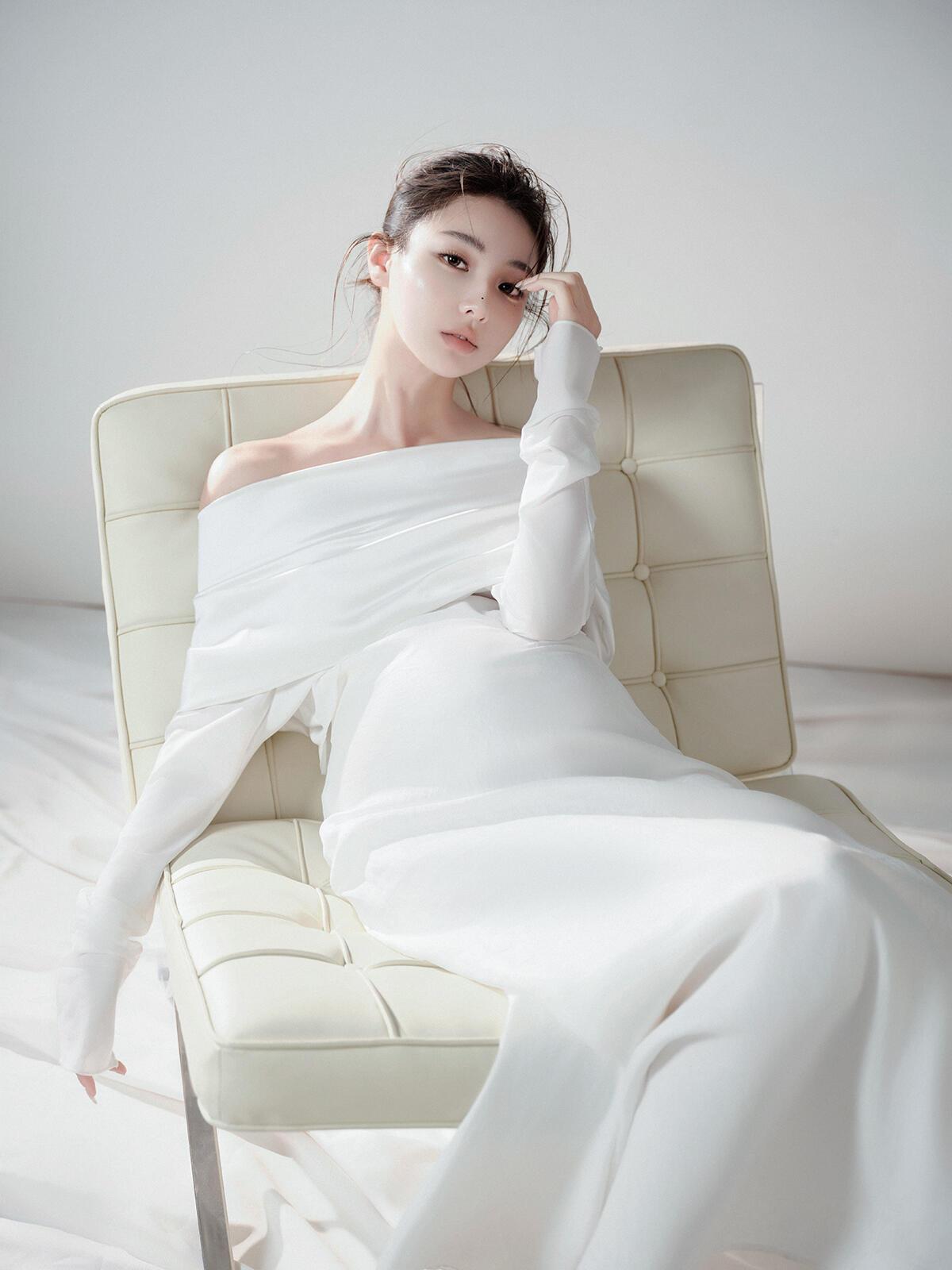 留白的温柔里,藏着生命悄然生长的弧度。 - 松弛的发梢、垂坠的纱袖,把期待裹进一身月光白。 - 每一帧光影,都是与新心跳的温柔共振。 . 冬日生活打卡季