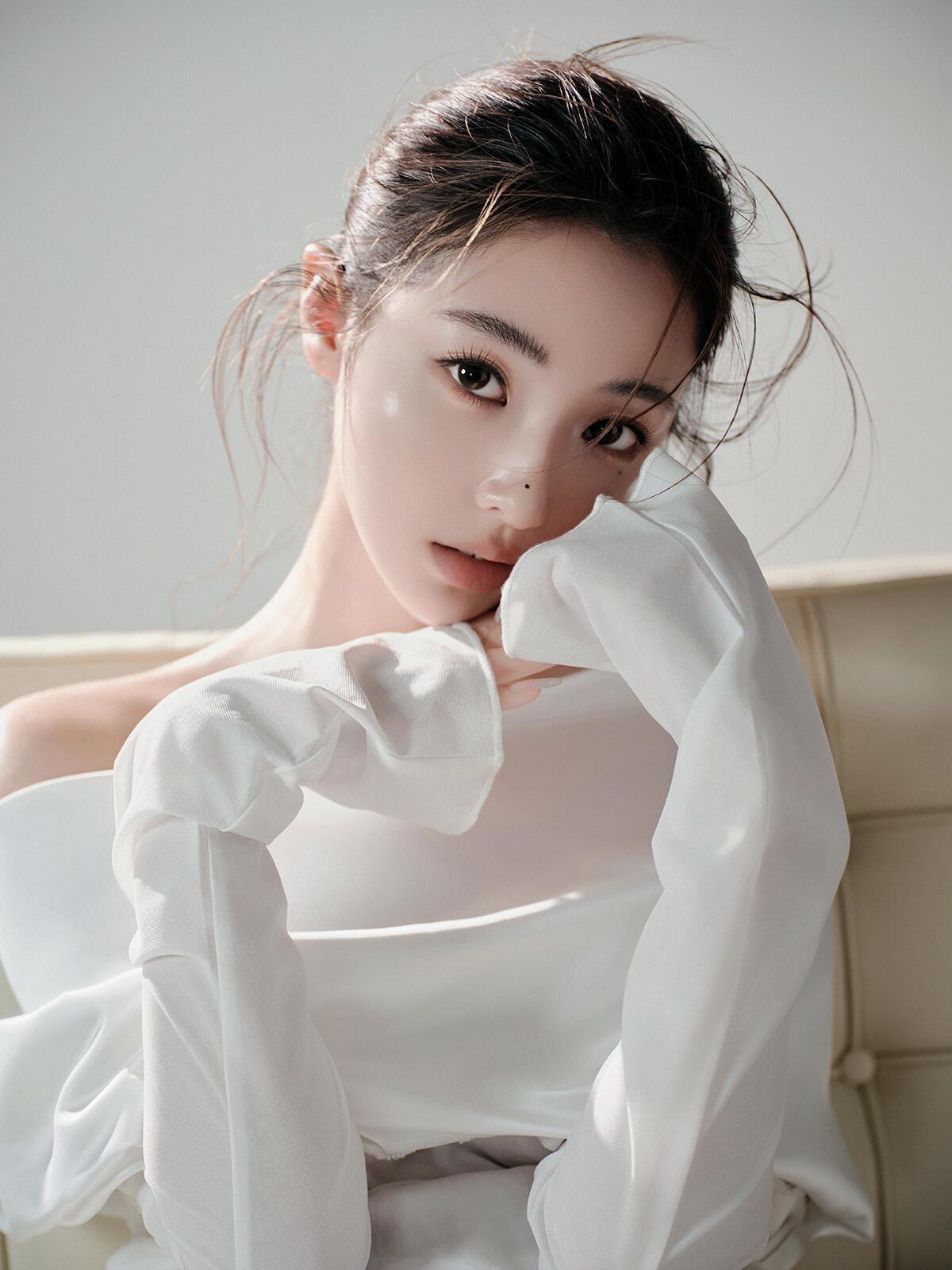 留白的温柔里,藏着生命悄然生长的弧度。 - 松弛的发梢、垂坠的纱袖,把期待裹进