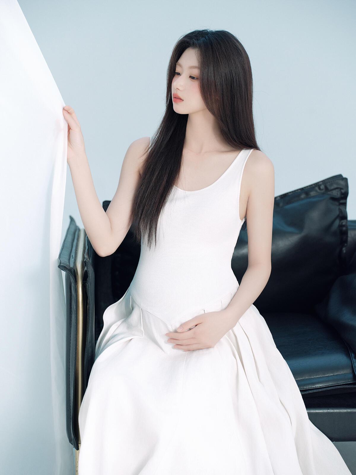 是风轻轻碰了下裙摆,也是心跳悄悄贴近肚皮的弧度。 - 白纱裹着温柔,黑沙发衬着柔