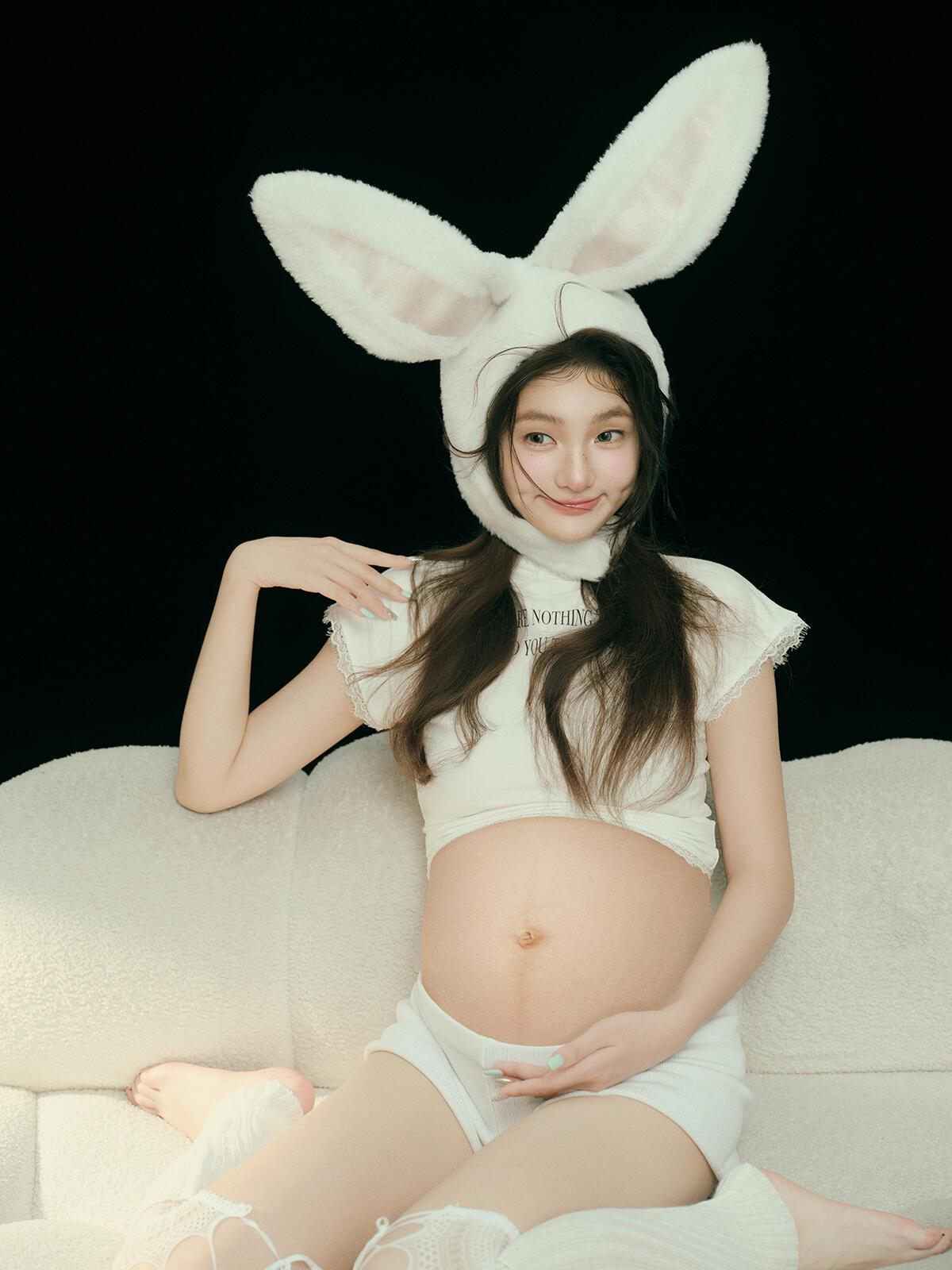 毛绒兔耳轻搭发梢, 奶白裙摆裹着柔软的期待。 孕肚是春天最温柔的花苞, 蕾丝袜边漫过脚踝,像月光织的梦。 . 沙发软得陷进云朵, 镜头里的笑漾开时, 连风都轻手轻脚,原来生命的初遇, 是奶油色的,带着茸茸的甜。 - 晒图笔记大赛 浅系兔耳少女 甜系兔耳少女 梦幻紫发兔耳