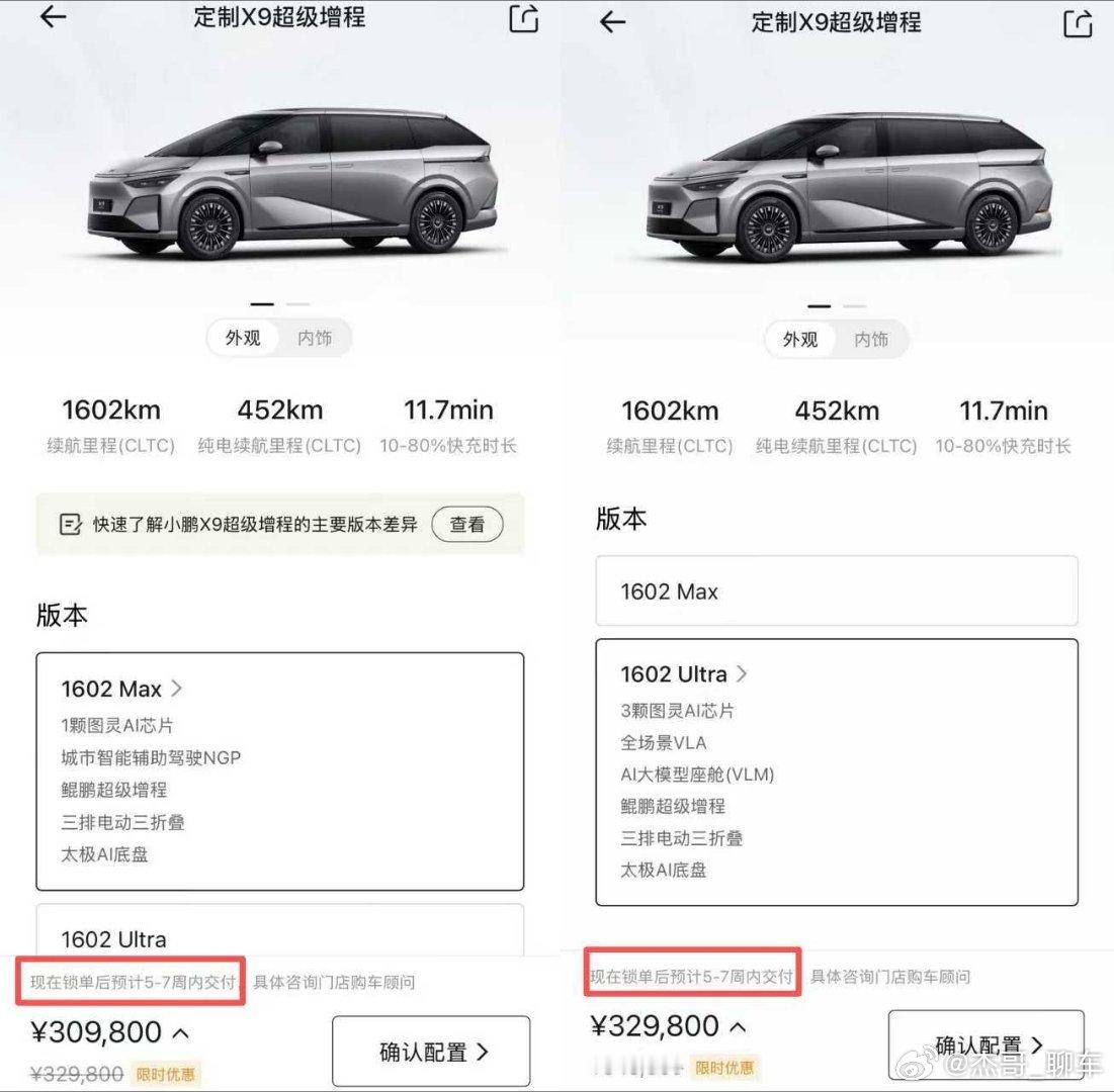 小鹏X9超级增程彻底卖疯了!上市1小时破X9全天大定纪录,72小时均店狂揽20-25单,Max/Ultra版交付排到5-7周后。最狠的是北方,订单占比首超50%,石家庄暴涨643%,1602km续航+冰雪系统直接戳中北方人冬季出行刚需~小鹏高管曝X9超级增程北方多地订单翻倍