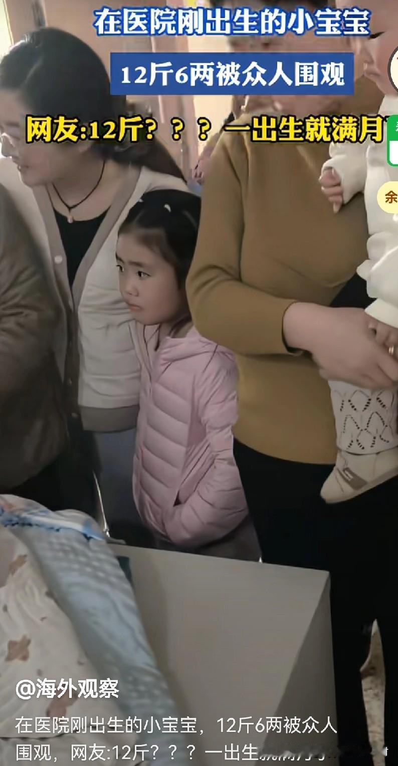 他可真是,爷爷奶奶的梦中情孙哪!刚出生,就弯道超车达到了12.6斤!要知道,其他新生儿满月了也不一定有这个体重啊! 你看他那,胖嘟嘟的脸蛋,圆圆滚滚的胳膊腿,要多可爱就有多可爱!另外,在他白嫩发光的小手腕上,还配戴着他专属的,粉色的小手环! 更给他的藕白,增添了一份亮色!他有力的小手,不停的在空中挥舞着,好像在向这个世界宣誓着,属于自己的主权! 护士阿姨,一边给孩子包被一边和的亲人们,介绍着他的健康情况,和值得注意的事项!由于他的特殊体重,也引来了不少吃瓜群众的围观! 孩啊!你一出生,就火出圈了!因为,别人的正常体重只有5到7.5斤,而你却一举成名达到12.6斤!成了,新生儿的天花板!友友们,你见过新生儿的体重,比他还高的吗?评论区聊聊!