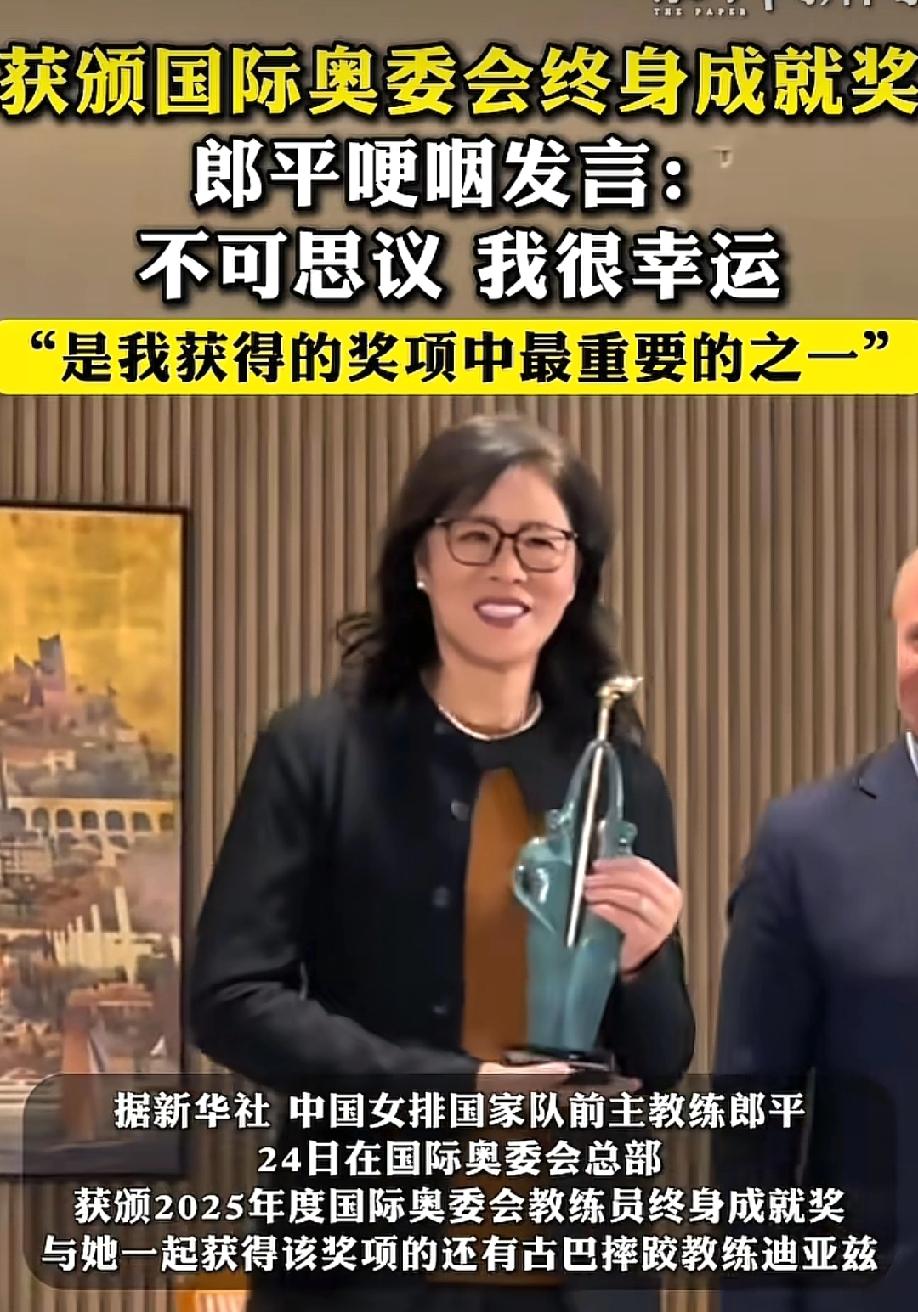“这真是实至名归!”2025年1月24日,在国际奥委会总部,中国女排前主教练郎平从撑杆跳高传奇布勃卡手中接过了国际奥委会教练员终身成就奖奖杯,那一刻她难掩激动,哽咽着表示这是自己所有奖项里最重要的。 作为运动员,郎平是中国女排“五连冠”的核心力量,“铁榔头”的名号响彻世界排坛;转型教练后,她两度带领中国女排创下辉煌,让女排精神在新时代熠熠生辉。 该奖项自2017年设立以来,每年仅评选2位对国际体坛有卓越贡献的教练。2025年共有152人获得提名,创下纪录,郎平更是三大球项目(足球、篮球、排球)里首位获此殊荣的教练。 布勃卡直言从152人中选出获奖者难度极大,郎平自己也感慨,从全世界众多运动项目和教练中被选中,觉得不可思议且幸运。 这份荣誉不仅是对郎平在排球领域开创性成就的认可,更是对她将女排精神升华为跨越国界体育图腾的肯定。 从运动员到教练,郎平用数十年的热血与坚守,书写了属于自己也属于中国体育的传奇,这份“不可思议的幸运”,是她拼搏半生赢得的最高礼遇。 郎平