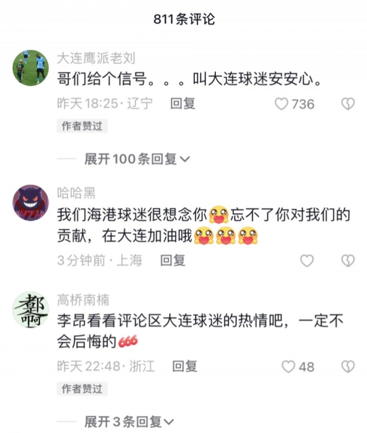 李昂更新社媒,与大连球迷进行了互动。 本赛季中超结束后,李昂在社媒发文向海港告别。昨天,李昂更新社媒并配文:“让我们期待新的故事啦!”有球迷在其社媒留言,“哥们给个信号。。。叫大连球迷安安心。”对此,李昂则给予这条留言送上了点赞。