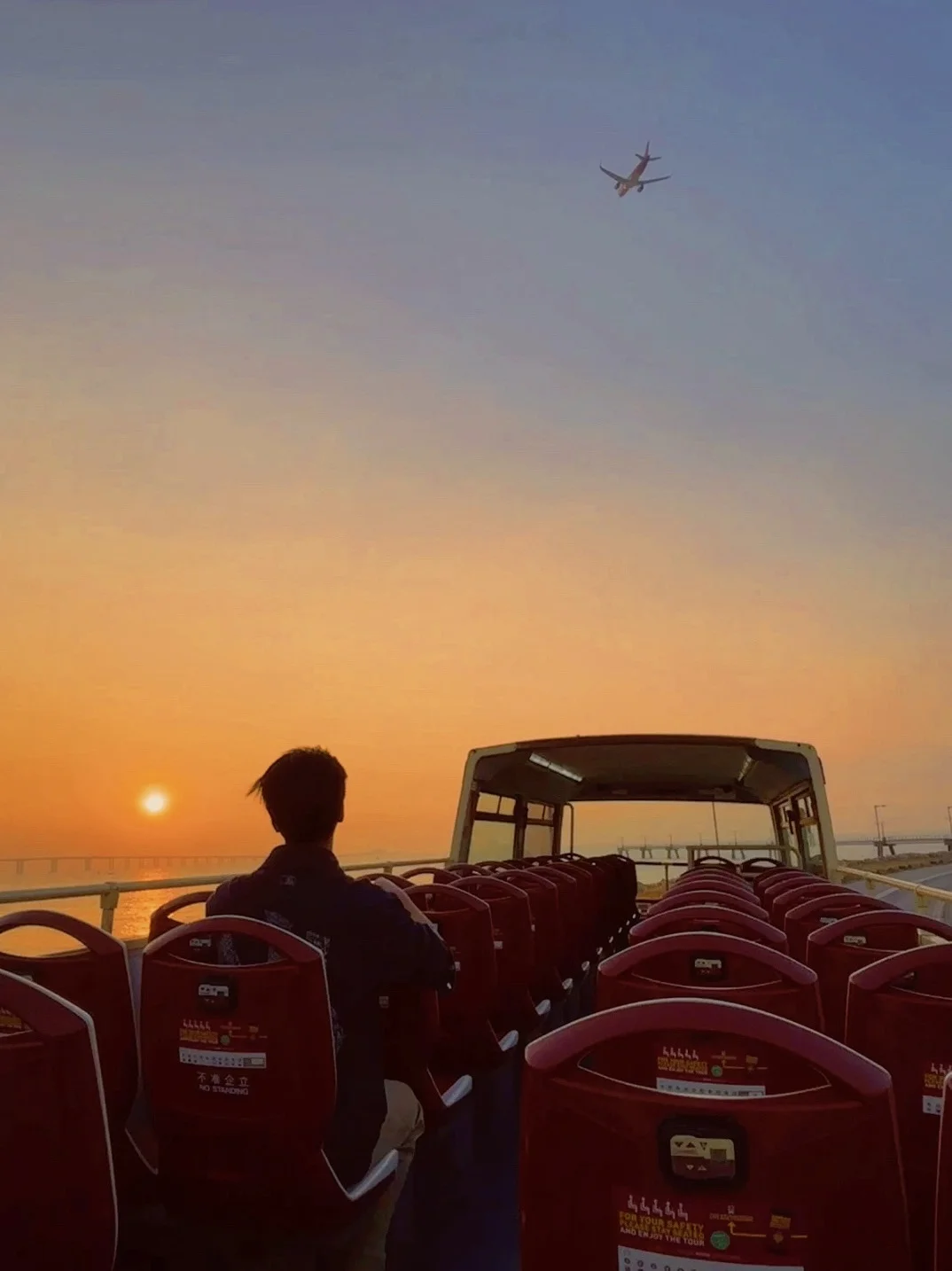 🚌日落飞车:在东涌地铁站B出口昂坪360缆车哪里坐,这个时候记得坐16:30分这趟,到海边机场维修区就是日落时候,中途有经过迪士尼站。