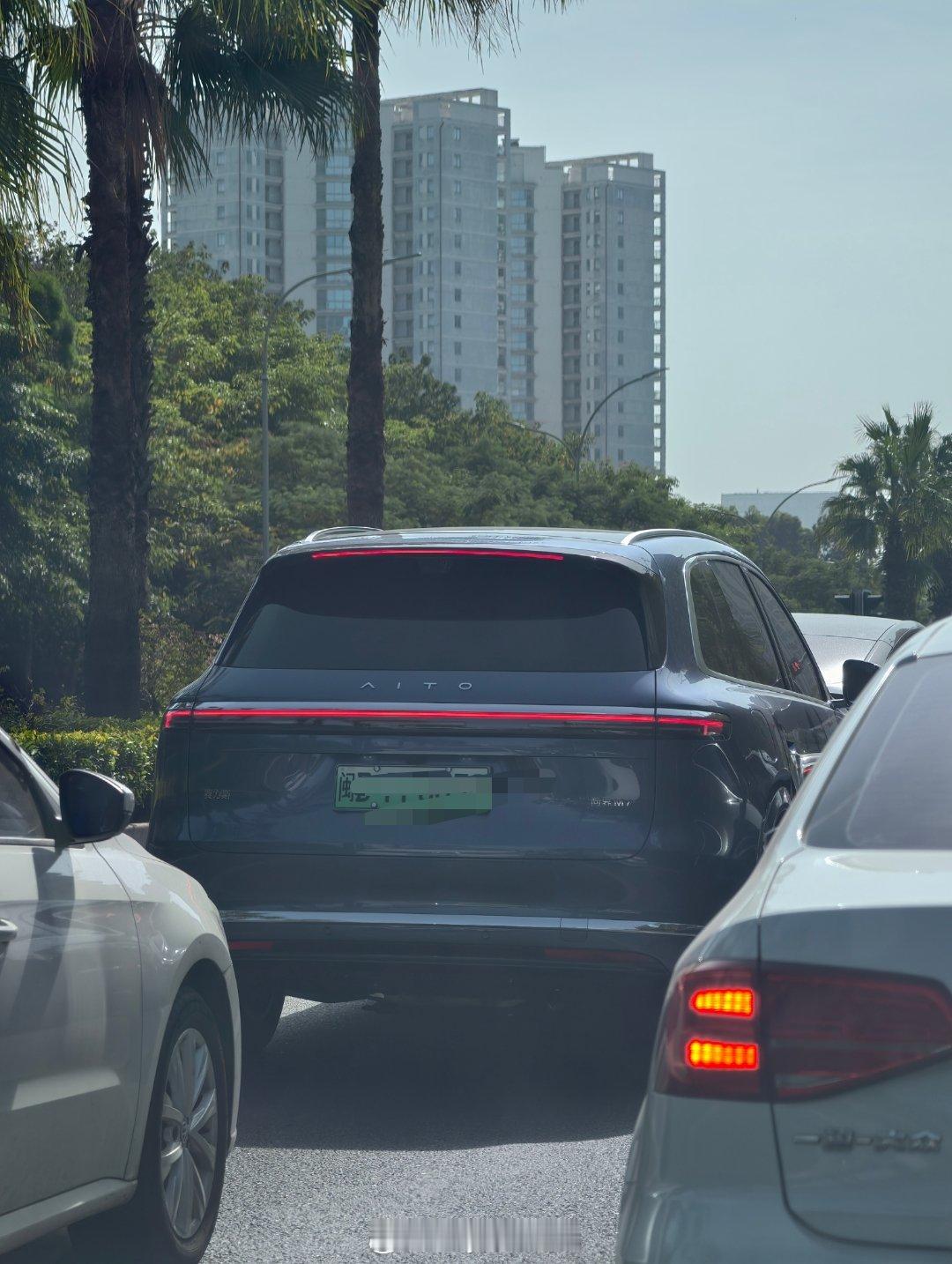 新款问界M7能见度越来越高了!单看这车尾,感觉像是M8M9的体量感,这次外观的改变非常成功!早上去问界门店拍M5,遇到在看M7谈单的客户,听到他们在说外观看起来霸气多了,车内实用性也增加了,家里长辈也很满意。大v聊车