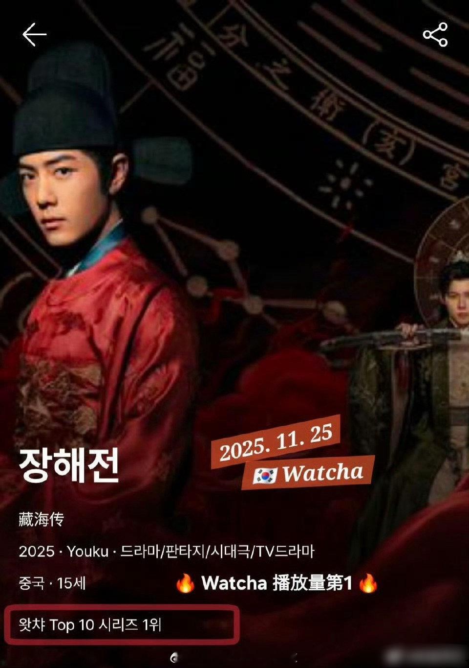 肖战的《藏海传》在韩国也很火,三大IPTV平台(SK Btv、KT Genie