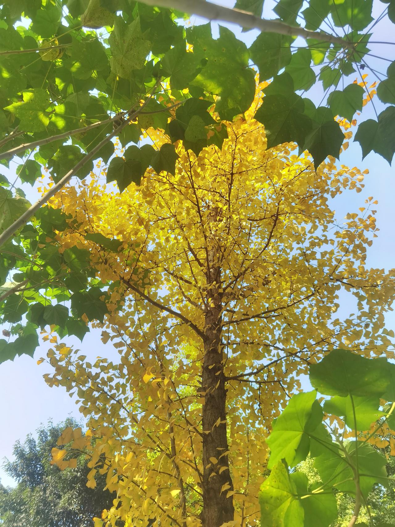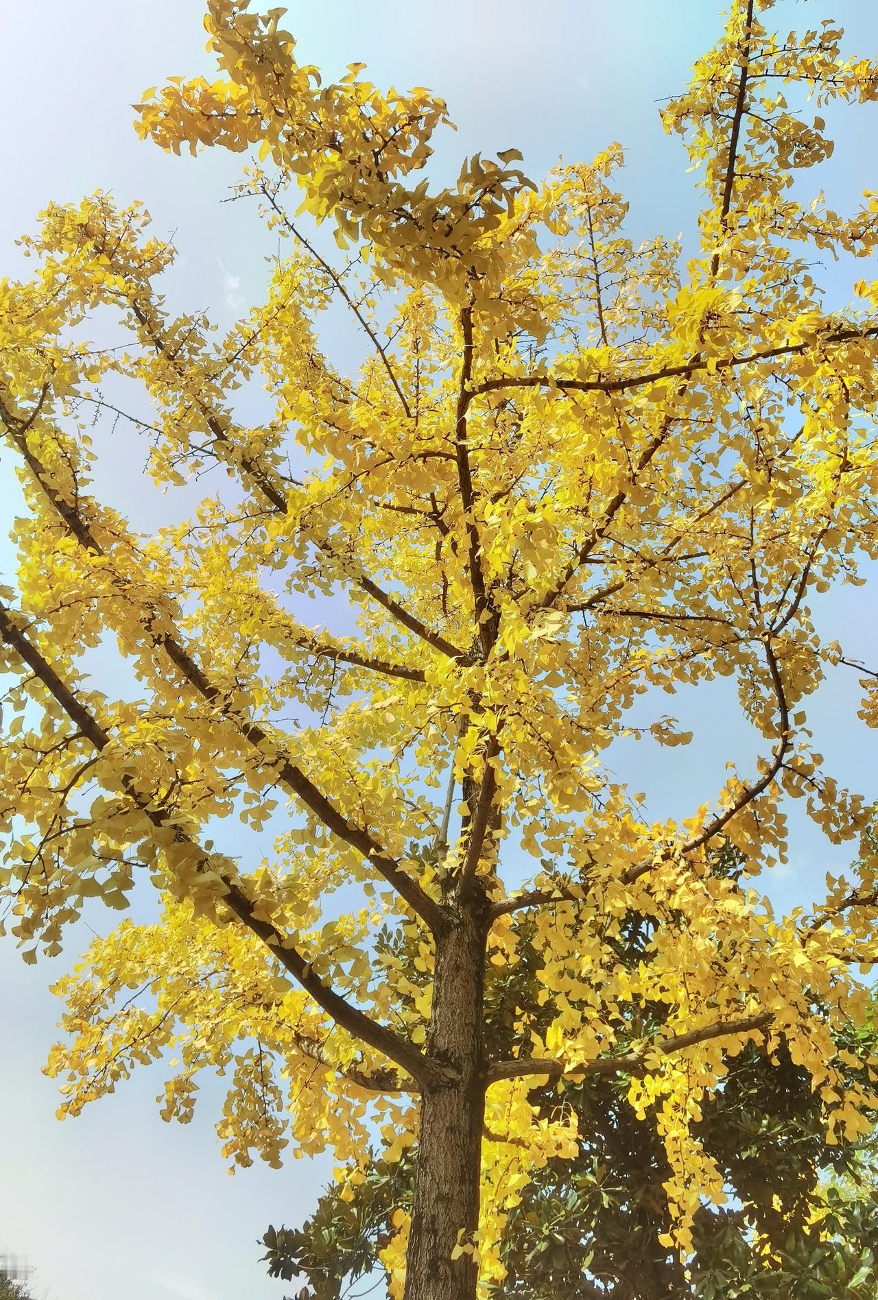 重庆的秋意渐浓,银杏树金黄色的叶子,在蓝天白云的映衬下,让人爽心悦目!