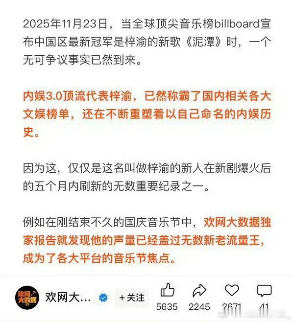 我才看到了,梓渝被官方认证了,梓渝凭借一己之力刷新内娱榜单,这含金量太足了吧欢网