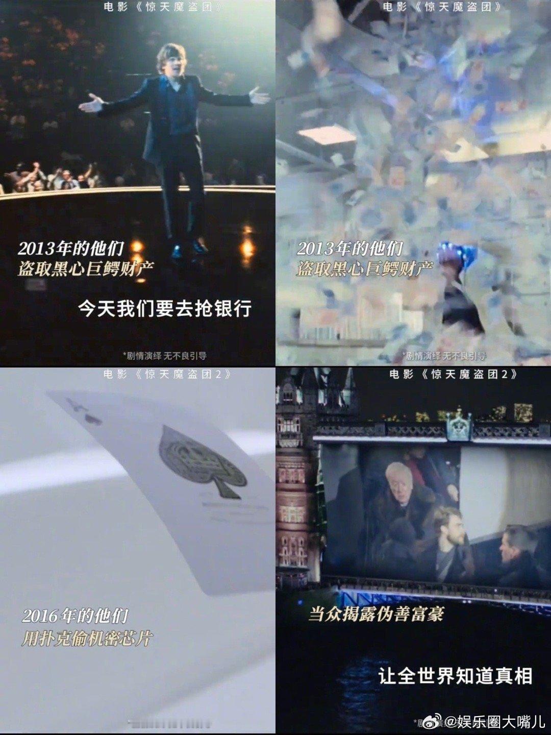 惊天魔盗团3的致敬细节 细节控狂喜!魔术城堡的连环小魔术复刻第二部传芯片名场面,监狱反客为主重现第一部套取隐私的经典桥段,每一帧都在call back前作,这个系列创作的完整性太让人感动了!