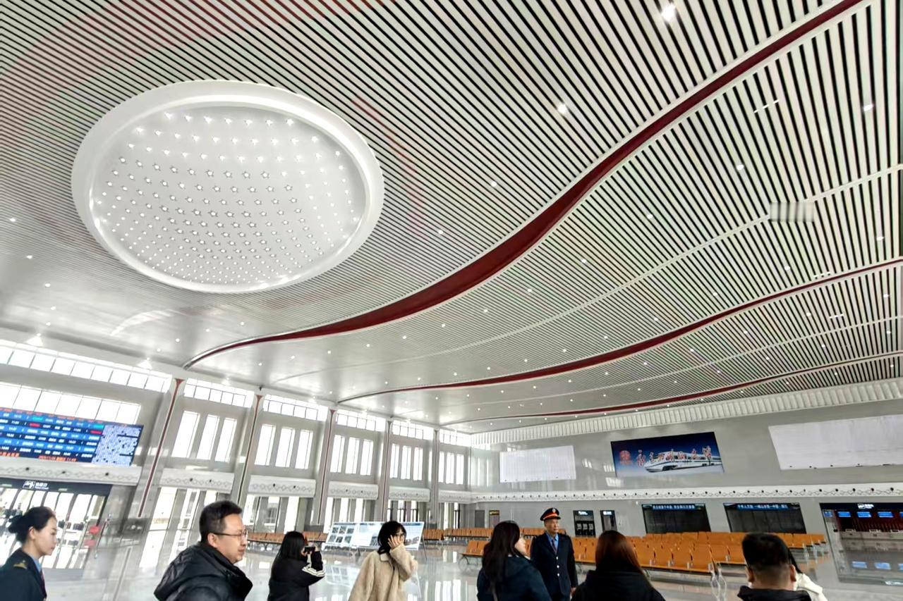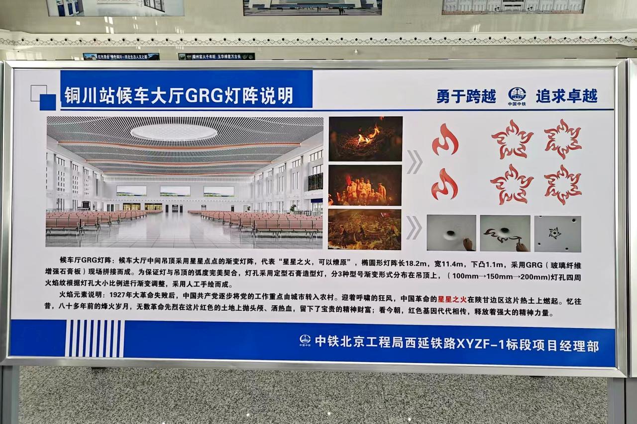 高铁列车即将驶入铜川,跟随悦君镜头提前解锁西延高铁铜川站。它位于铜川市耀州区,规模3台7线,是本次新建8座站房中建筑面积最大的车站。站房设计结合“红色照金,青色耀瓷”理念,提取耀州地貌及药王山高台元素;内部候车大厅中部吊顶采用星星点点的渐变灯阵,代表“星星之火,可以燎原”。西延高铁