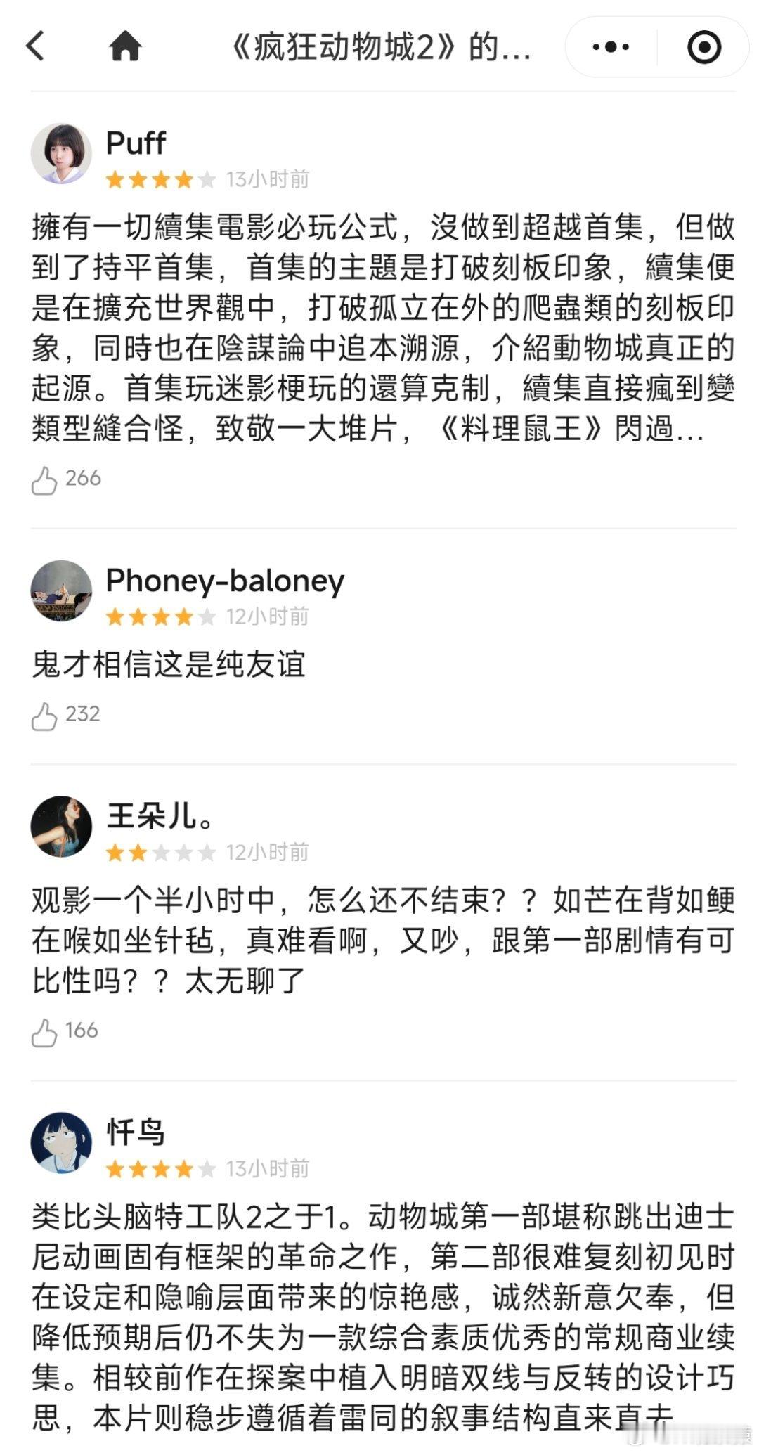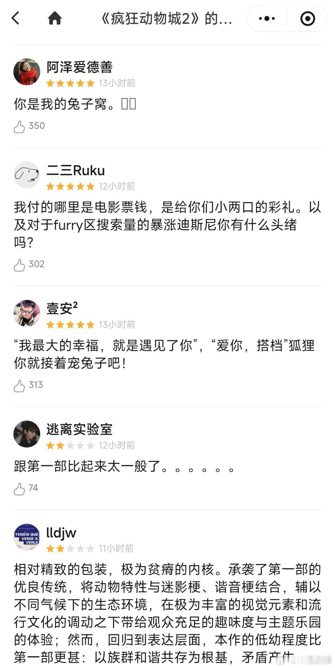 疯狂动物城2首批观众反馈疯狂动物城2豆瓣评价,口碑两极化了。