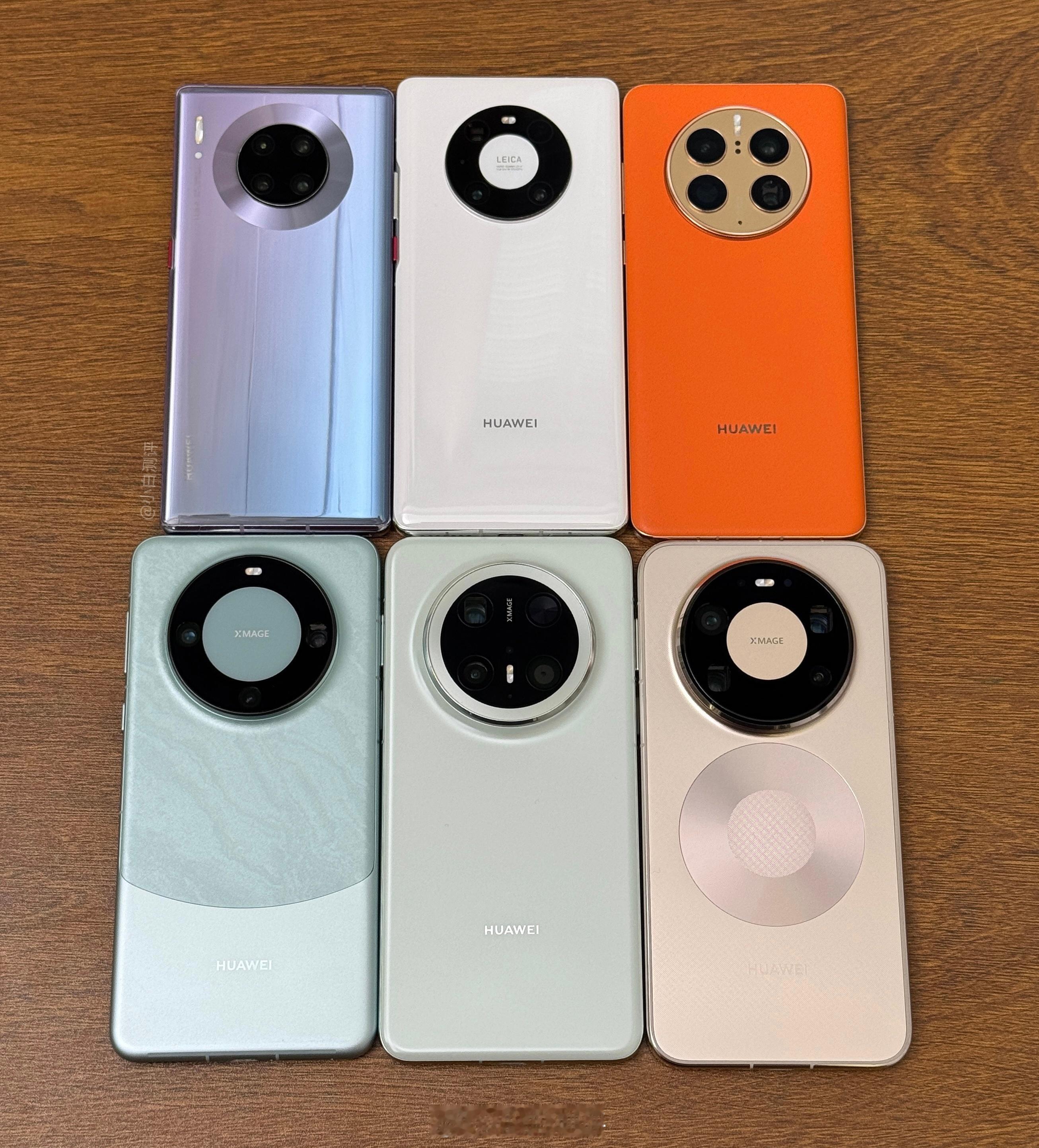 华为Mate 30 Pro华为Mate 40 Pro华为Mate 50 Pro华为Mate 60 Pro华为Mate 70 Pro华为Mate 80 Pro Max六代Mate合影,有你用过的吗?最喜欢哪代的后盖设计?有点东西小白测评