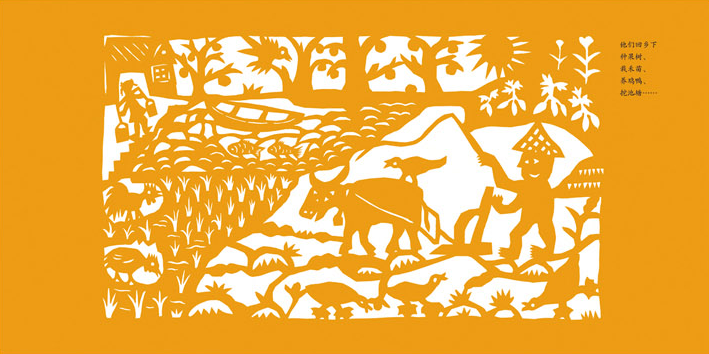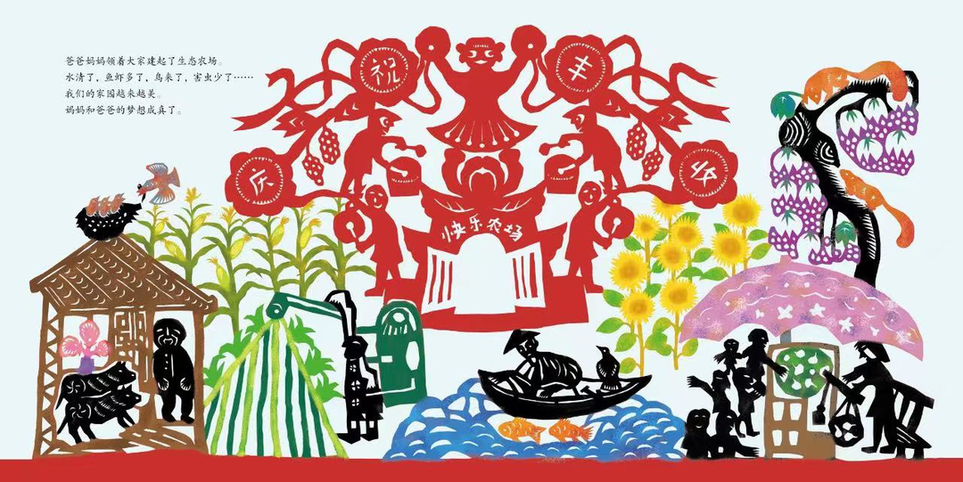 女儿将妈妈30年前的剪纸作品重新构思,画面里的主角是妈妈,主线是成长——一位喜欢弹琴、刺绣、量体裁衣的姑娘成长为一位快乐的妈妈,和爸爸共同建设美丽乡村、创造美好生活的故事。
