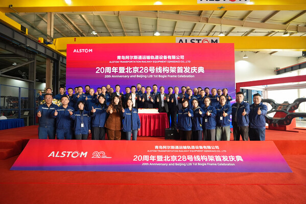 青岛2025年11月26日--阿尔斯通在华独资企业青岛阿尔斯通运输轨道设备有限公司(ATRE)[1]在青岛举办公司成立20周年暨北京28号线构架首发庆典活动。阿尔斯通中国领导团队和集团产品平台领导出席了此次活动,共同见证这一里程碑时刻。