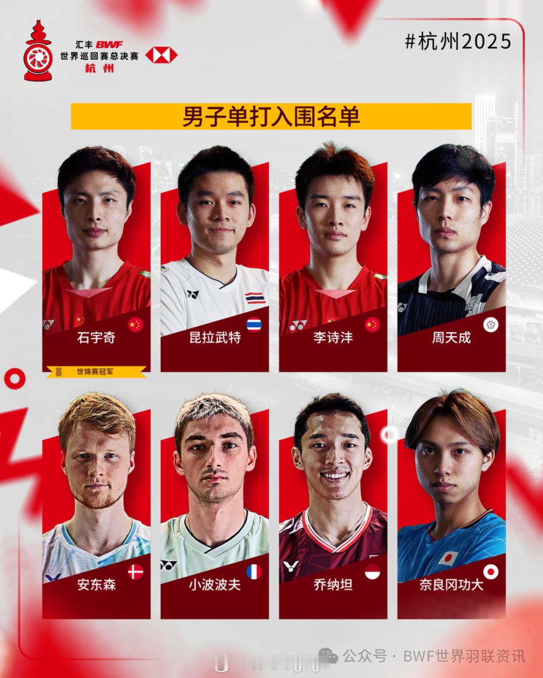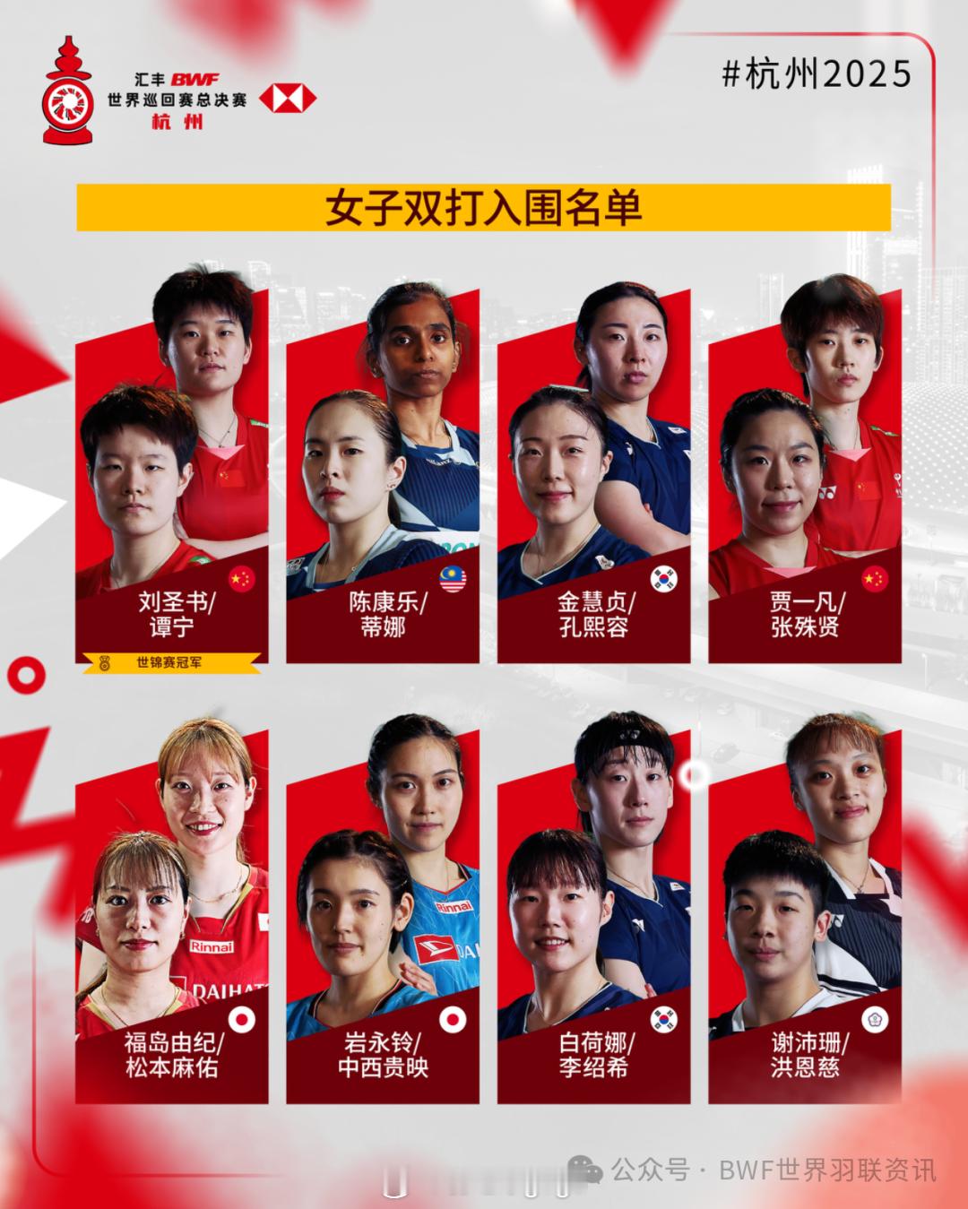 总决赛国羽四个单项满额 相比于去年的名单,国羽今年的名单变化来自男双、混双和女双,梁伟铿/王昶、冯彦哲/黄东萍和张殊贤重回总决赛。图片来源见水印