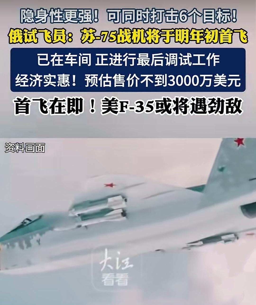 俄罗斯甩出“白菜价”,3000万美元不到就能买五代机?看样子是真急了! 苏-57还没玩明白,俄罗斯的苏-75隐身战机已经带着“价格炸弹”杀向国际市场。 这款被俄方高调吹捧的单发五代机,刚放出2026年初要首飞的消息,就先甩出一组数据惊掉众人下巴——1.8马赫速度、同时打击6个目标、强化隐身设计。 但真正逆天的不是这架战机数据多么亮眼,而是它的售价竟不到3000万美元!这个价格仅为美国F-35和中国J-20战机的三分之一都不到。 这波操作,难怪有人直言“俄罗斯是急了”。一边是苏-57战机量产耗时多年,在国际五代机市场表现比较难堪,另一边是俄乌冲突持续消耗资源,急需通过军售回笼资金、维持本国航空工业体系。 而此时苏-75的横空出世,更像一次抢占的市场的行为。主要瞄准那些预算有限却渴望隐身战机的中等国家,想用“低价高配”的噱头撕开一道缺口。 但这些仅停留在嘴上的数据背后,让人对此有诸多争议。 这款曾被戏称为“胶合板模型”的战机,到现在仍缺乏公开的飞行测试数据,这种先公布参数再推进试飞,难免让人质疑有赶工和夸大的痕迹。 更值得注意的是,俄方这次是拉上缺乏先进战机经验的白俄罗斯。此举既想规避自身出口的限制,也难逃“分摊成本”的嫌疑。 甚至有人认为这是在"下套",目标就是印度,对于这种猜测其实也并非空穴来风。印度在之前苏-57项目上半途而废,却始终对五代机有强烈需求,毕竟,东大是实实在在拥有两款先进隐身战机,眼红在所难免。 而价格低廉的苏-75隐身战机,对印军有着较强吸引力。不止是印度,还有东南亚的越南、马来西亚等国,现在都面临老旧战机的更新压力。3000万美元的单价对他们来说,实在是太香了。 再来,俄罗斯作为明面上的世界唯二的军事大国,中美两国五代机均已量产,数量都达到数百架。这让俄罗斯十分焦虑,生怕被踢出强国行列。所以,宁可勒着裤腰带砸钱造新战机,也要保住“军事大国”的门面。 说到底,苏-75的低价牌就是想用性价比挑战F-35的垄断地位。但战机买卖从不只看纸面参数,实战的可靠性才是关键。 那么,你觉得俄罗斯这款低价五代机是真的很香还是画了一个大饼?请说说你的看法。