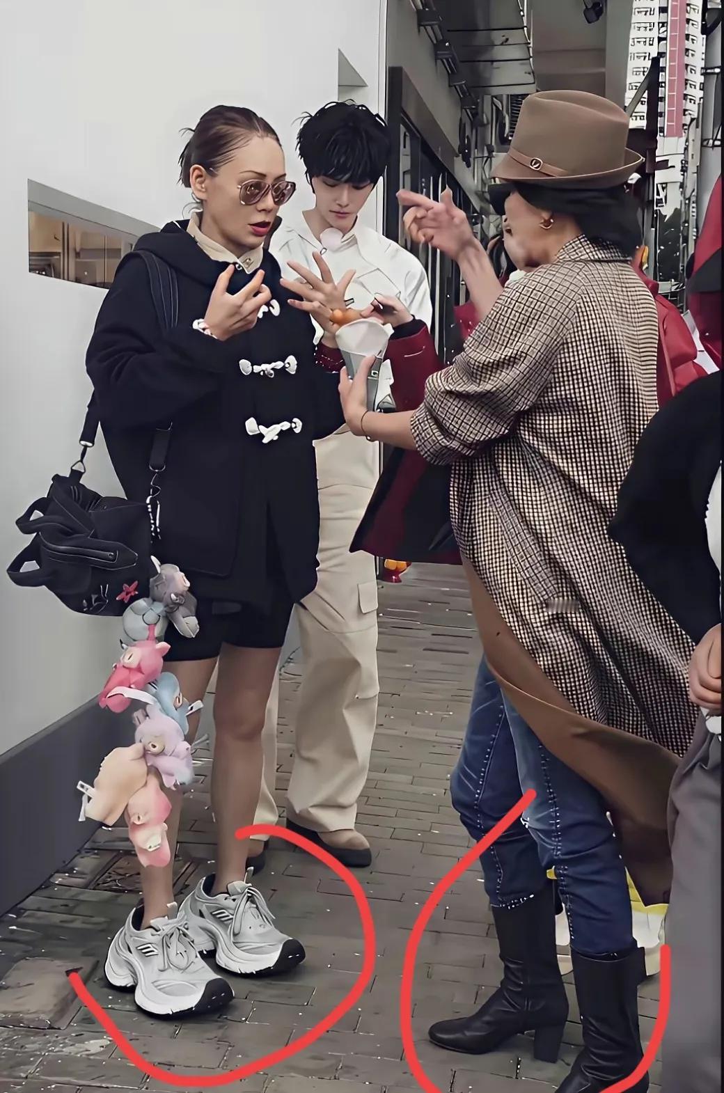 众所周知,刘嘉玲的气质品位是毋庸置疑的,让我难以忍受的是宁静的大头鞋,图一是淑女的女角扣,就该穿长袜平底鞋还是乐福鞋,图二那高跟靴是什么穿法,为啥不穿长裙。 她的鲨鱼鞋,设计师是喝多了设计的,这种大鲨鱼鞋就该搭阔腿裤。 宁静每次,无论穿淑女的,还是穿酷飒的,她总搭不对,真的无法直视。