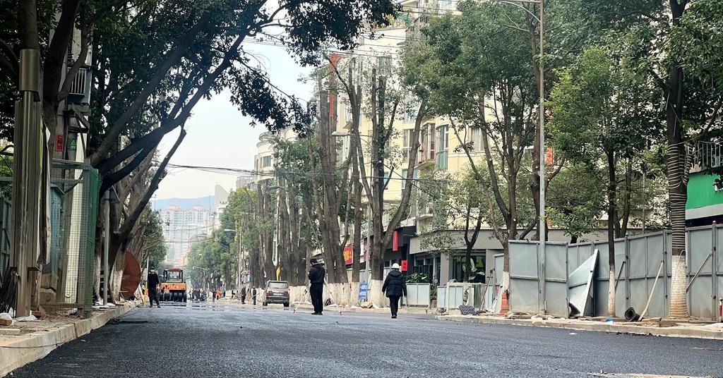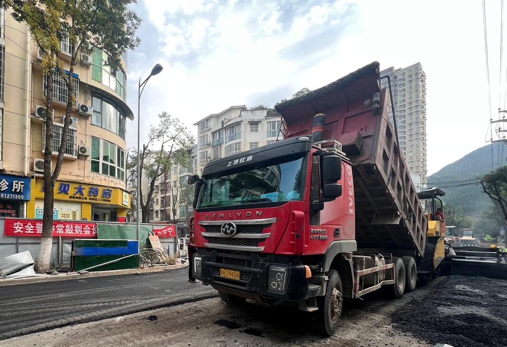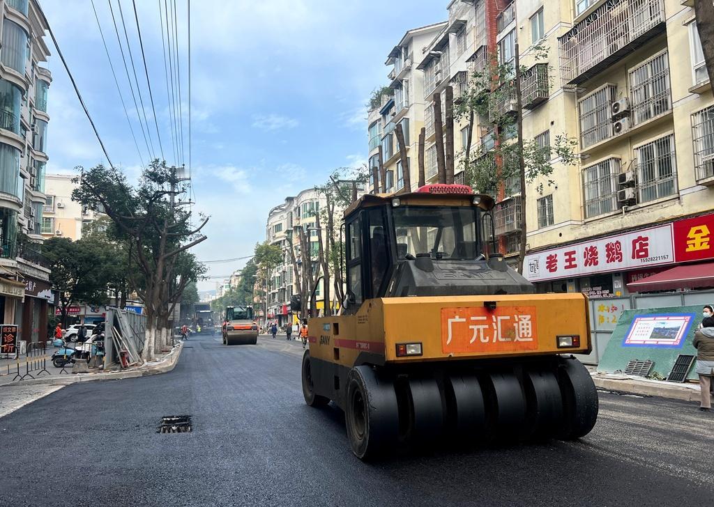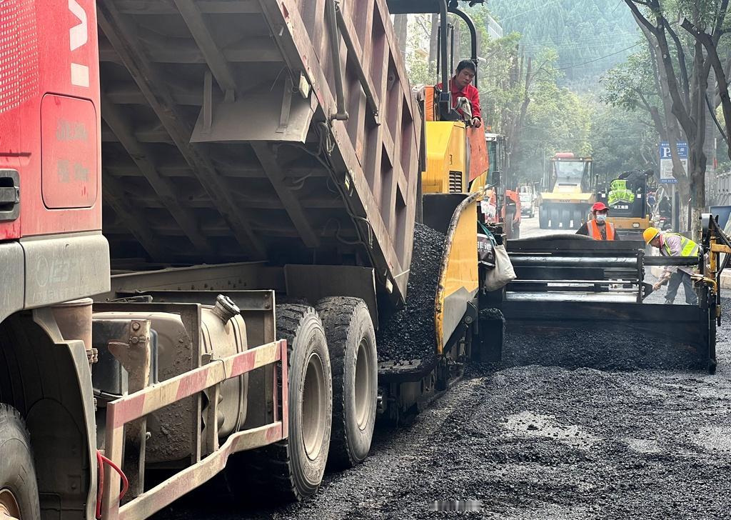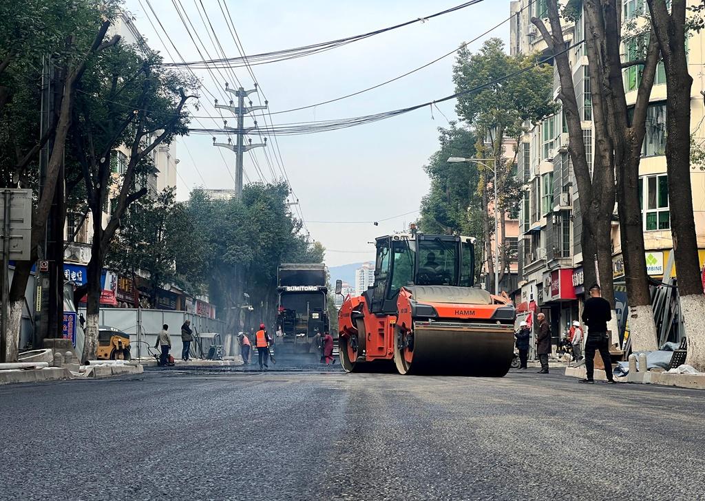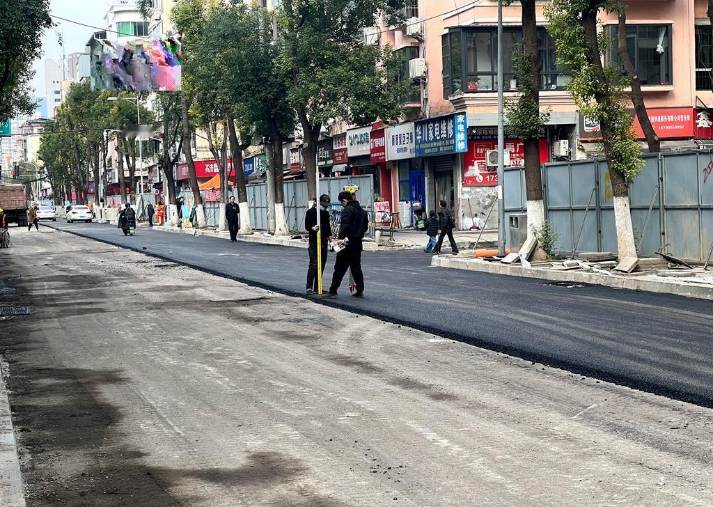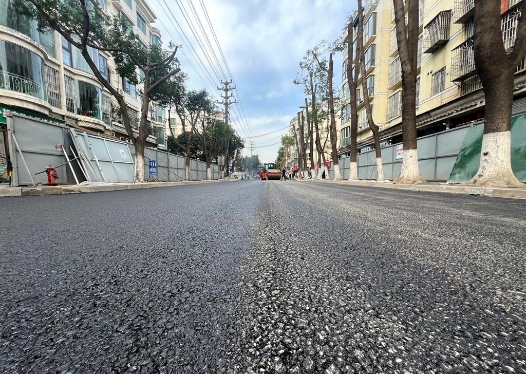 目前,正在进行沥青路面铺设。