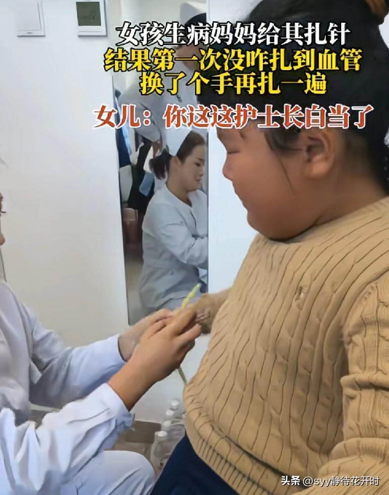 这个妈妈的脸,丢大了!她好像受到了,世界上最狠的批评! 一个女孩生病了,于是爸爸就带她来到了,妈妈工作的医院看诊!当要输液时,她的妈妈正好可以利用职务之便给她献爱心了! 女孩也挺高兴,妈妈给她扎针一定又快又不疼!于是,她做好心理建设后,就把手臂伸了过去!爸爸怕她看到针害怕,还很贴心的用手遮住了她的眼睛! 准备就绪后,就等着针扎皮肤的痛感,快点过去了!不料,想在丈夫和女儿面前,露一手的妈妈出糗了! 也许,是给自己的女儿扎针紧张?也许,是因为女儿的小胖手血管不好找!这个身经百战的护士长,第一针竟然失手了! 她不好意思地,对女儿说:“女儿这针没扎好,得换另外一只手扎了!”女儿一听不乐意了,“你给别的小朋友,扎一针就行了!为什么,给我要扎两针啊?你这护士长,白当了!呜呜……” 妈妈被女儿批的,真是体无完肤啊!但针还得打,没办法她只能硬着头皮,给孩子提供足够的情绪价值了!唉,可怜的孩子即使不愿意,也是小胳膊拧不过大腿啊! 好在,第二针打成功了!妈妈也长长的,舒了一口气!毕竟,是自己的孩子,当妈妈的哪会不心疼!她看了看孩子的左手,又看了看孩子打针的右手,只能尴尬的笑了! 友友们,你说护士长为什么给别人家的孩子,扎一针就完成了!而给自己的孩子,却扎了两针?评论区聊聊呗![捂脸]