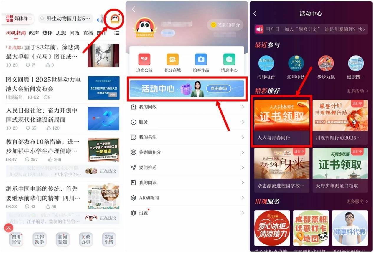 请获得前1000名的个人用户,于11月26日—30日24时前登录川观新闻APP或“四川日报”微信公众号,进入“人大与青春同行”活动专区/页面,点击“战绩查询”并根据弹窗提示准确填写提交您的信息;并于12月1日—15日24时前,进入“人大与青春同行”证书领取页面,领取自己的电子证书。