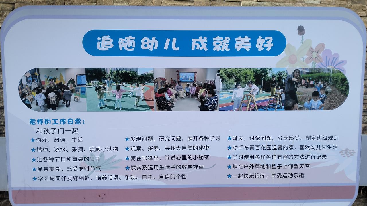 自驾海南之旅14——幼教的希望 自驾海南之旅的途中,来到湖北省宜昌市,下榻的酒店对面矗立着一栋崭新的幼儿园——伍家岗区第一幼儿园。 早起,透过偌大的玻璃窗眺望市景,对面小朋友们入学的景况吸引着我的注意力。一个个小朋友沿着门前16级台阶拾阶而上,犹如人民代表进入人民大会堂议政国是的壮丽景象。 幼儿园门前,道路两旁等距离站立着六个老师,老师们不时的和前来上幼儿园的小朋友及家长打招呼,当走进门口时便有一位老师引领进门,令人感到惊讶的是开车送孩子的家长,车停在门口老师开车门接上孩子,而家长不下车秒停后,一溜烟就离开了,骑电动车的家长同样不下车,孩子下车家长离开,都是“在下车出迎接”的国宾级待遇。 在幼儿园大门里面,有两位身着粉色护服的老师坐着为每个入学的小朋友擦手消毒,检查口腔,一丝不苟。 吃完早餐,我赶紧下楼去拍照片,询问一位12岁女孩的妈妈酒店服务员陈女士。她说这是一家公立幼儿园,从别的地方才搬来不久,以前公立幼儿园不及不及私立幼儿园,现在竞争越来越激烈,公立幼儿园也好了起来。 上前看,幼儿园围墙上图文并茂,口号响亮:“政府公办,幼有优育;生态花园,回归自然;快乐学习,全面发展;追随幼儿,成就美好;家幼合作,共育花开;营养美味,为爱护航。”不用进入了解,这家幼儿的幼教一定是名副其实。 我们管护孙子六年有余,幼儿园的情况也了如指掌,但从来没有见过这样周到热情服务的幼教工作。 孩子们是祖国的花朵,未来的希望。如果全国幼教工作都能像宜昌市伍家岗区第一幼儿园一样,我们何愁祖国不强大,国家不强盛!