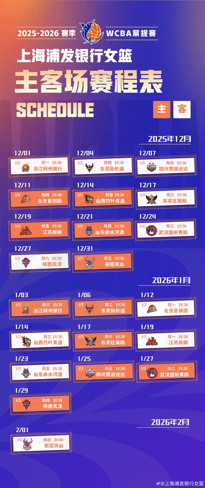 虎扑11月26日讯据上海浦发银行女篮发文,公布2025-2026赛季上海浦发银行女篮赛季定妆照及常规赛赛程!