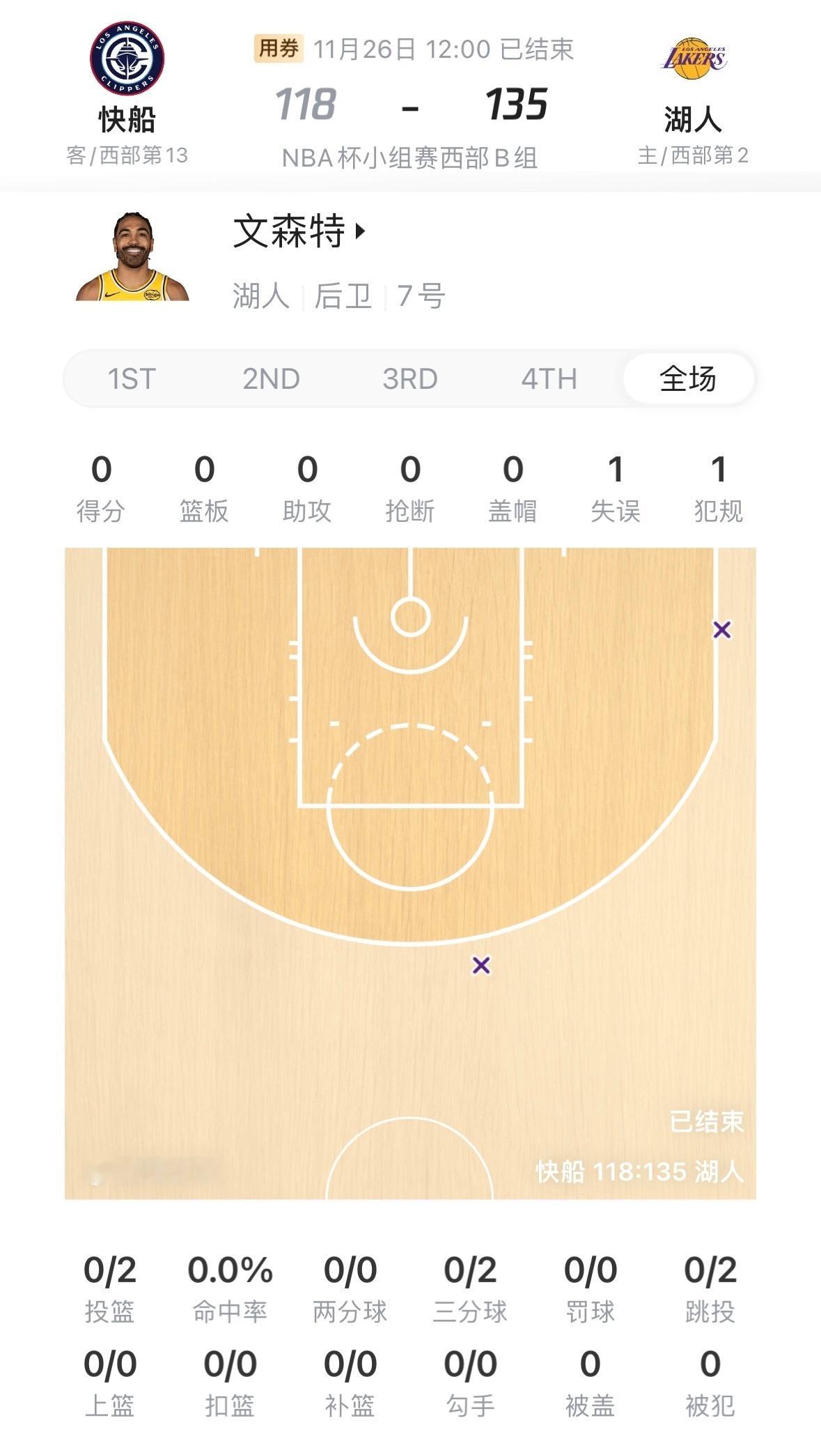 我说一个搞笑的事情,今天是“五零宏光”一周年纪念日,刚好文森特一年前也是5个0。目前职业生涯有41次0分表现,其中湖人生涯包揽其中的13次。