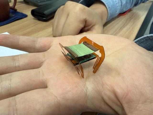 重约1克、身长仅2厘米,却能在一秒内原地转弯280度,以每秒9.6厘米的速度灵活移动……这个形似蟑螂的小巧装置,其实是一款高度仿生的微型机器人。它不仅动作敏捷,更具出色的环境适应能力,从高处跌落即使“肚皮”朝天,无需翻身即可继续爬行;受到约120斤外力踩压时,还能收缩“四肢”以自我保护,待压力移除后恢复行动,展现出如原型“小强”般强大的韧性。