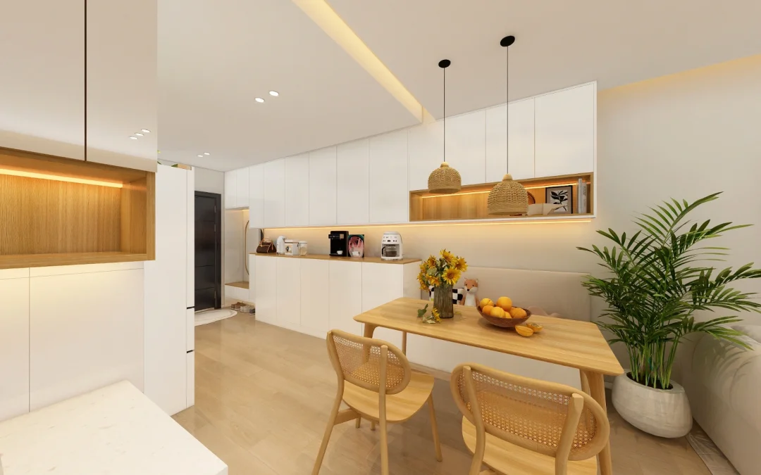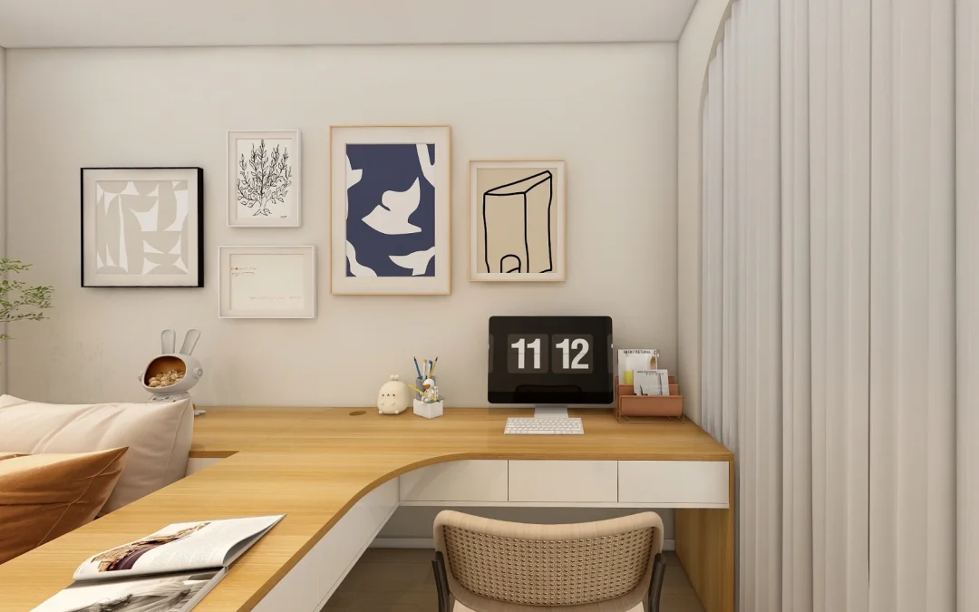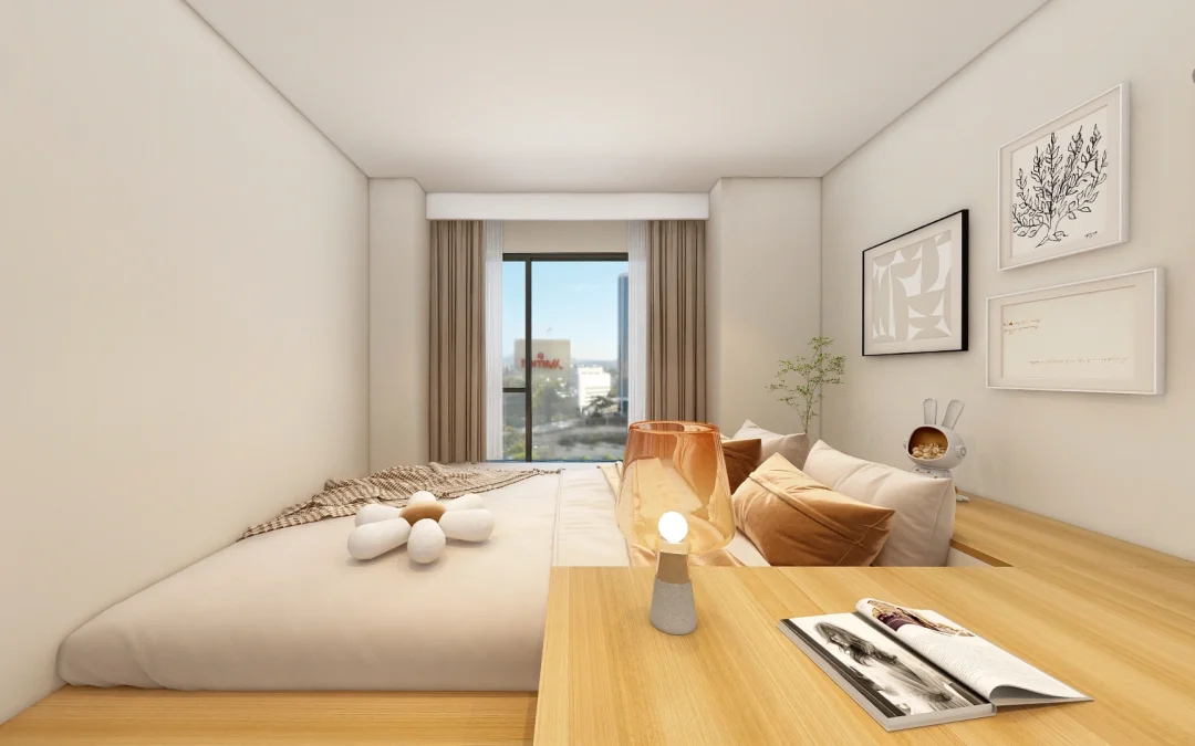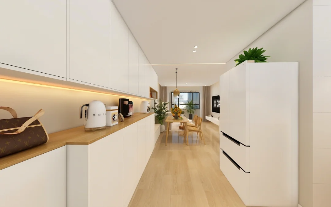 本案是85平米两室户型,采用源于自然与轻透的素材如木材、玻璃等, 创造朴秀清新与明亮透泽的氛围,辅以适度留白喘息,不做满的收纳配比,让空间保有余裕留给未来可发挥的弹性。保持屋内一致的视觉感,映现方正利落架构与线条,留下洋溢于光中的无压清爽姿态。