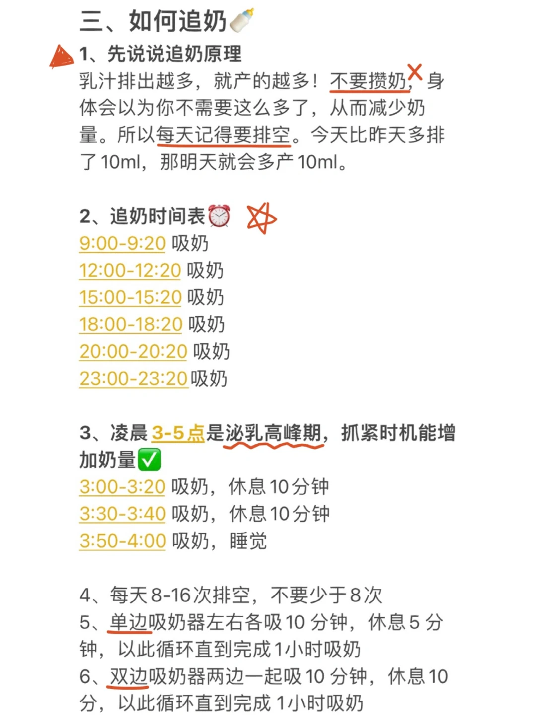 2️⃣吸奶器:奶少的妈妈,可以2-3个小时排空一次,亲喂完后,再追吸10分钟