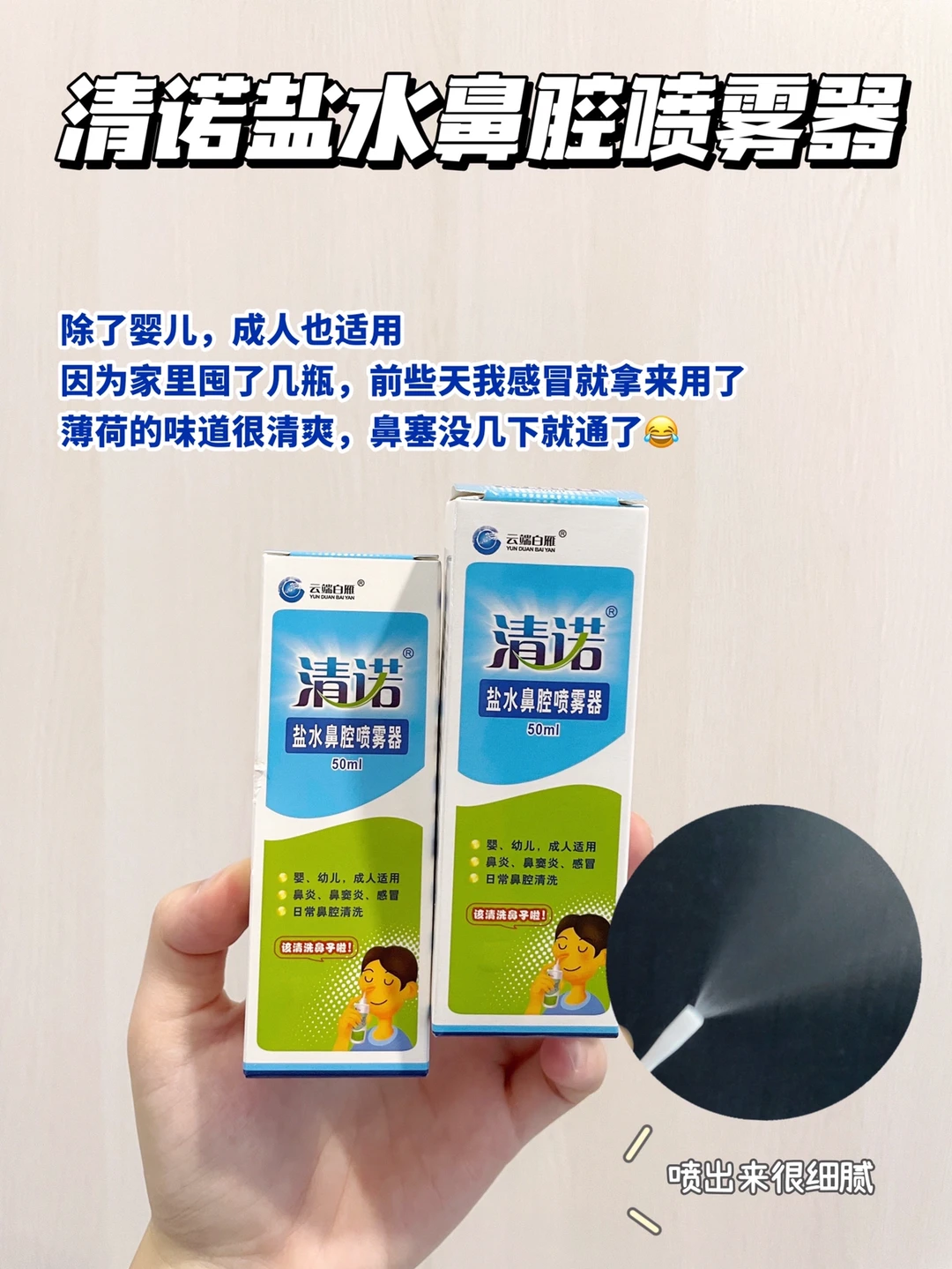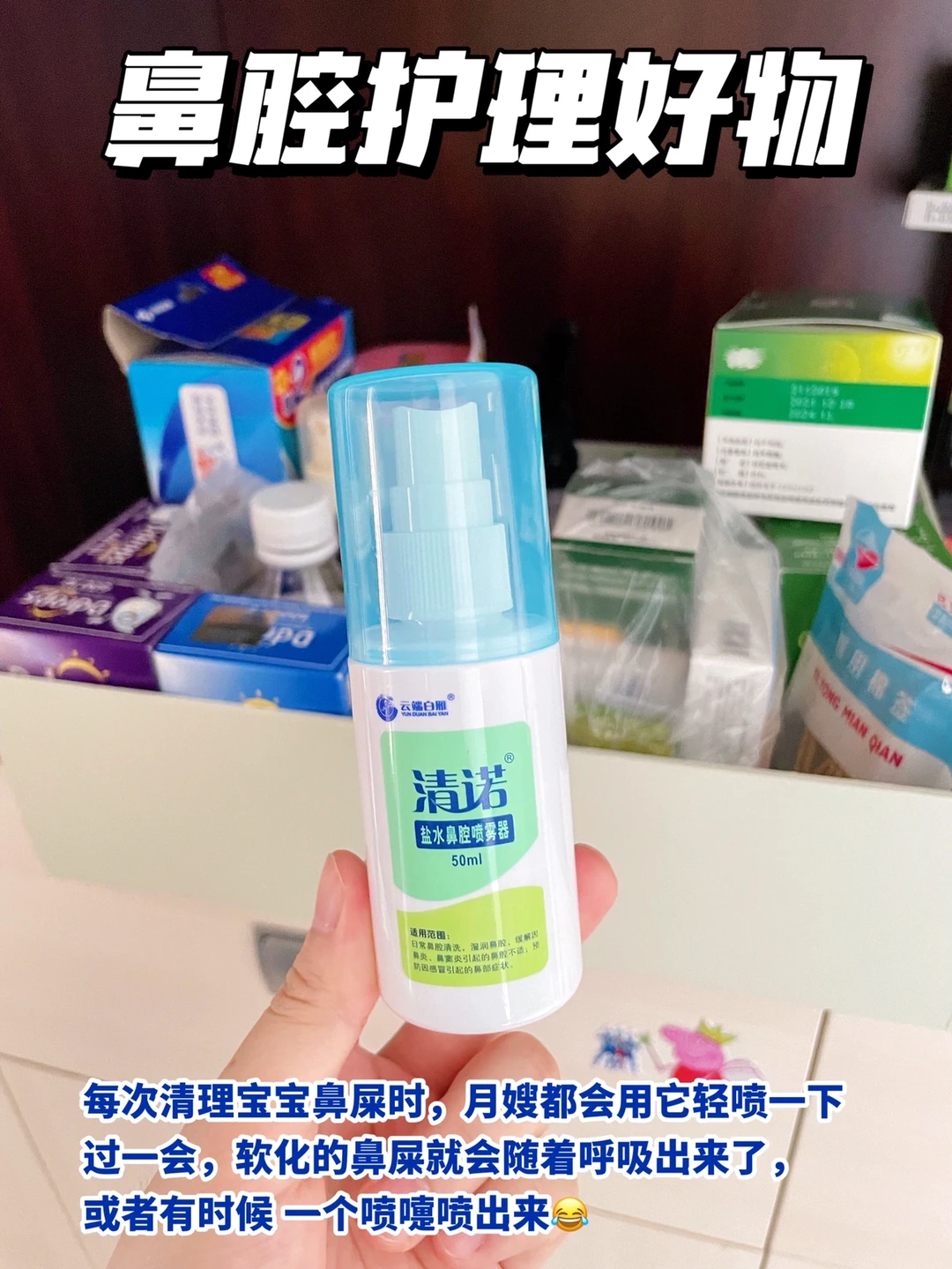4️⃣盐水鼻腔喷雾器,清诺的很好用,里面是0.9%浓度的生理盐水,轻喷一下,鼻屎软化后很快就会随着宝宝的呼吸被推出来了