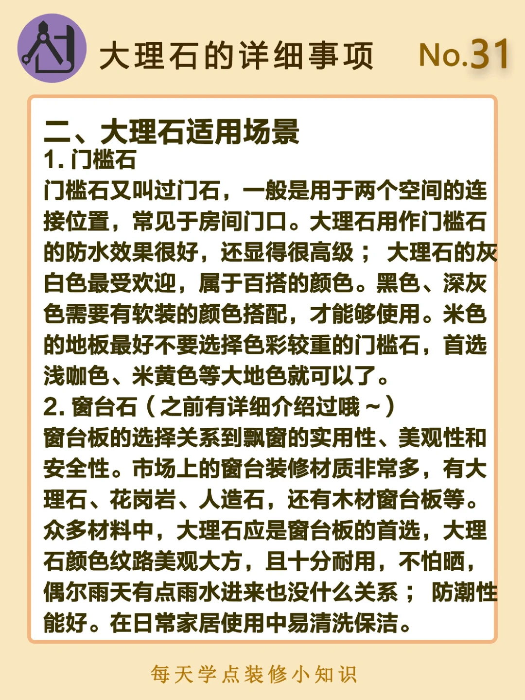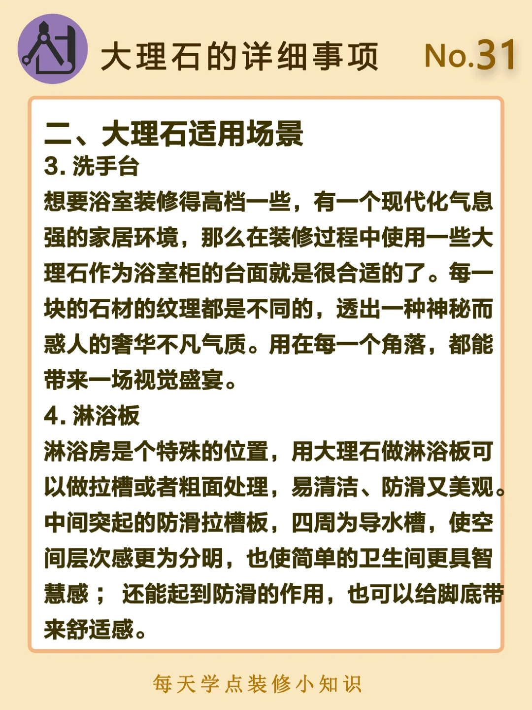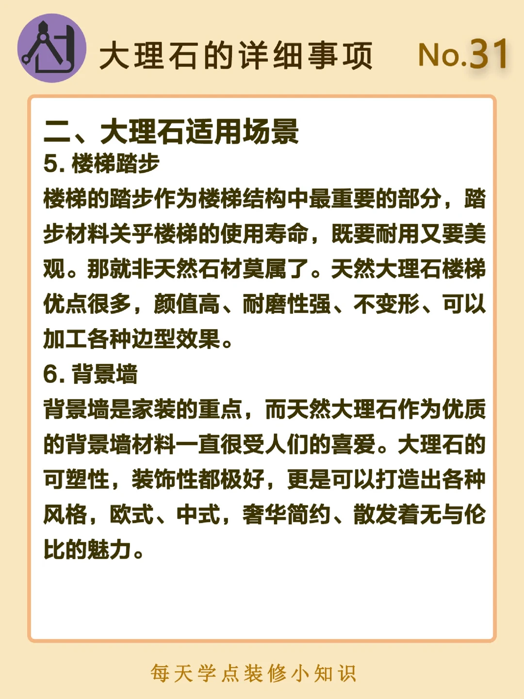 ①大理石造价高,如需大面积使用将导致装修预算增高。