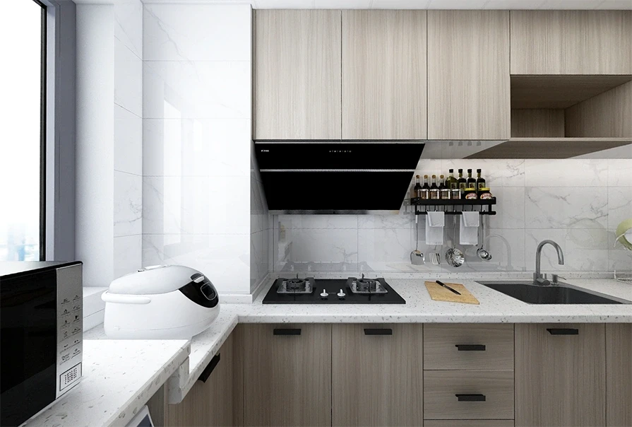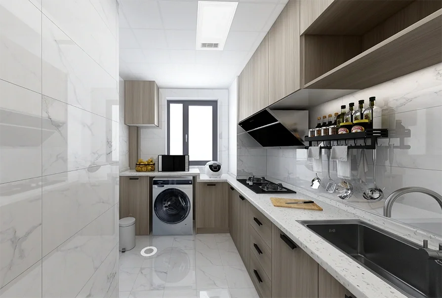 🌈L型厨房缓解了转角空间的尴尬,整体布局灵活多变,非常适合小户型。同时厨房做了大量的柜子,增加了收纳空间,再多的厨具都能够收纳得下。