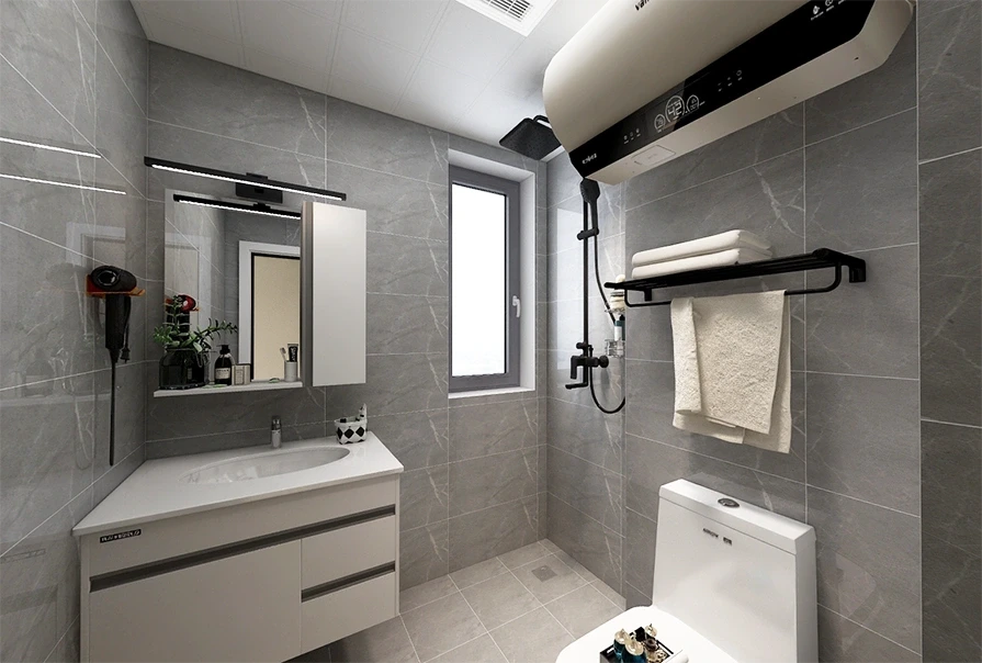 🌈卫生间白色的柜体,看起来十分干净,台下盆设计,台面能够增加更多的面积。镜柜同样的兼具美观与实用。浅灰色墙砖耐脏又美观。