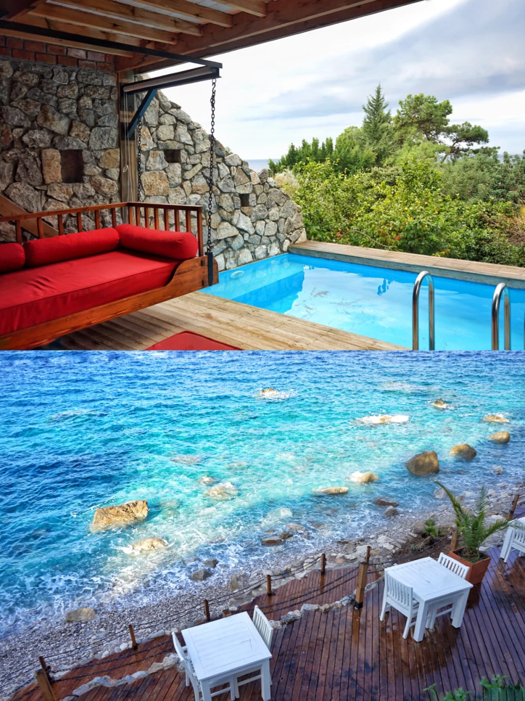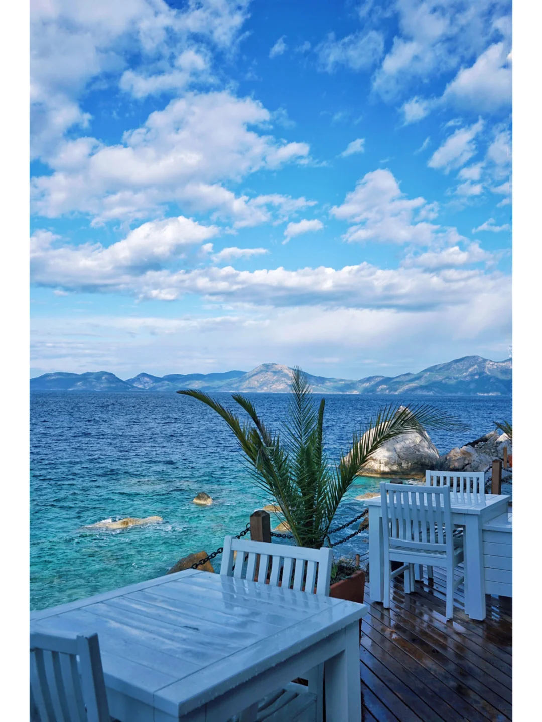 🌳🌊司机从卡什半岛载我们到费特希耶,但航海酒店非常难找,后来酒店司机开着皮卡车在丛林里穿梭15分钟才到达,真的仿如世外桃源。悬崖边一排排白色的桌椅,远处的群山,白云☁️状的无边泳池…感觉真的很梦幻。在旅行接近尾声的时候,能在这样的地方chill地躺一天,看看地中海、蓝天白云,觉得便是马不停蹄行程的reward。