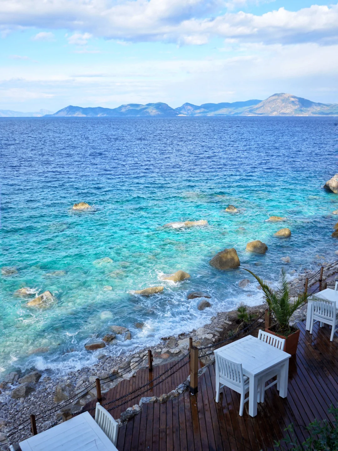 🌳🌊这算是我和小伙伴一见钟情的酒店。渐层的海岸线,悬崖边上的餐厅,丛林里的地中海式石质建筑,距离蝴蝶谷(butterfly valley)仅2.5公里(据说那是一个人类未涉足的美丽世界,是蝴蝶的自然栖息地,也是土耳其的自然保护区)。查看地图,发现离费特希耶市中心也并不远,便果断决定前往。