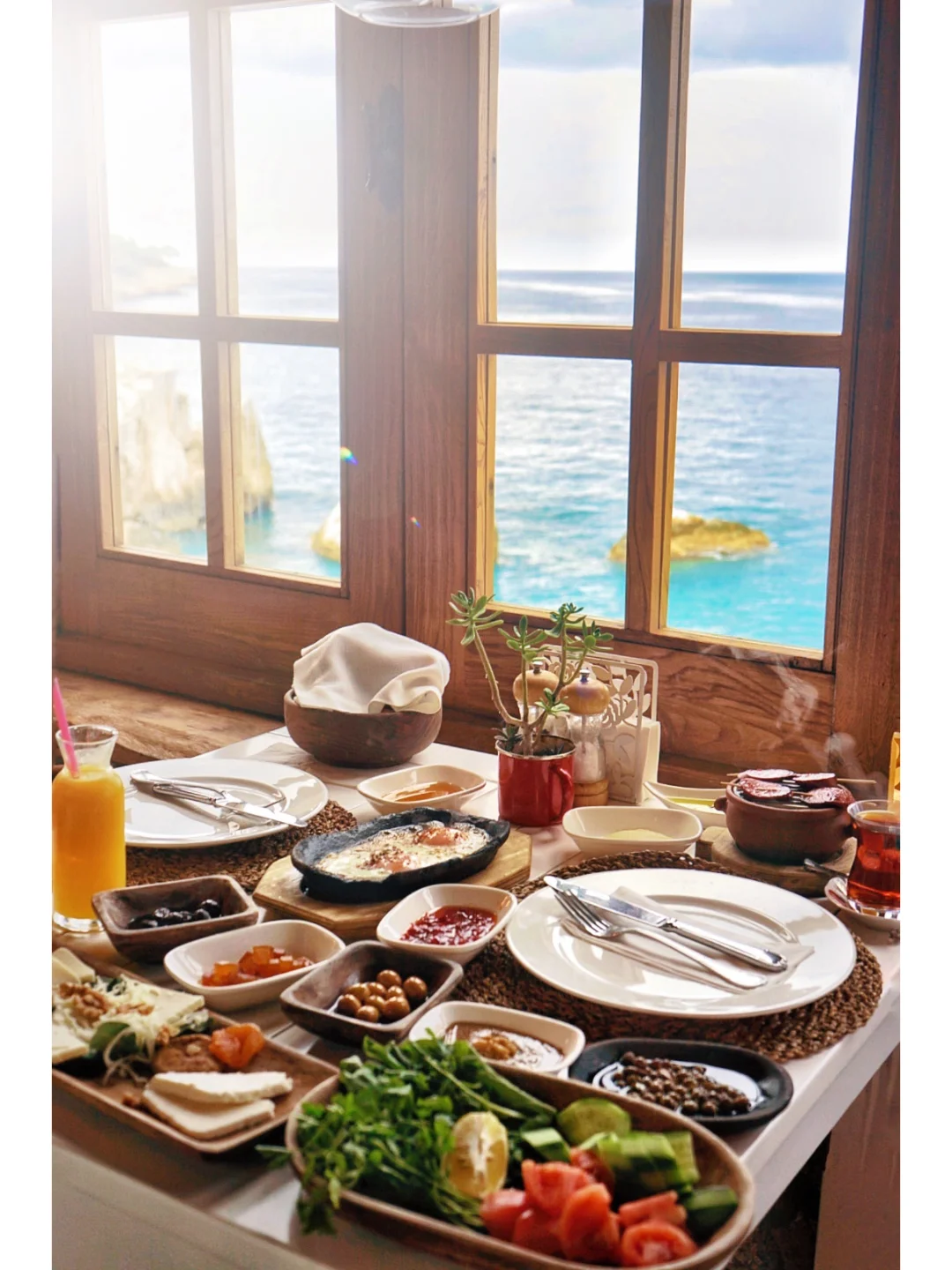 🌳🌊这家酒店的早餐如图6⃣️,算很丰富。土耳其的早餐看着很多盘很多颜色,其实没几样是我爱的。但这家的早餐颜值高,味道也很不错。房间的景如图8⃣️上,有泳池,可以看到远处的海景。但最好看的依然是酒店的自然风光。