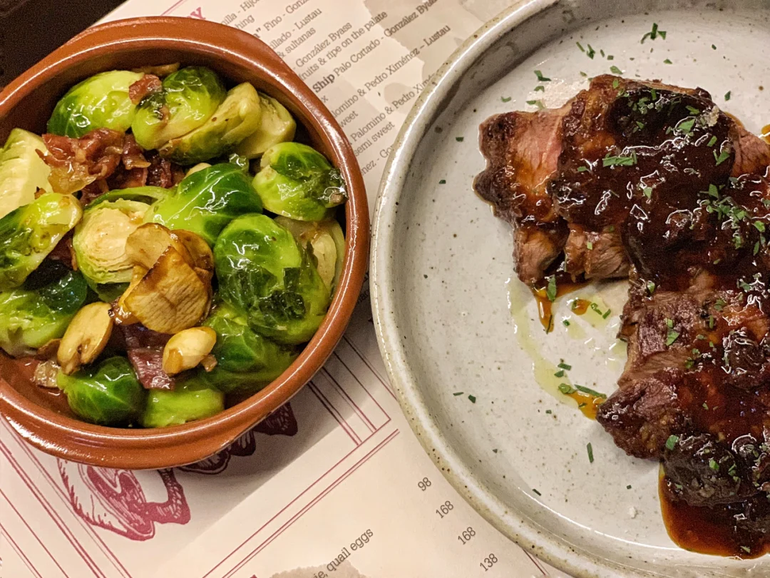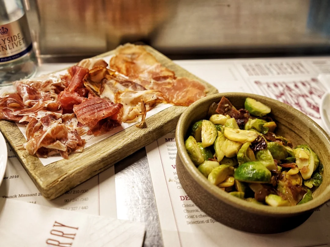图4⃣️/8⃣️Brussels Sprouts, jamon, chestnut :孢子甘蓝+火腿+栗子,有点脆,火腿的香味渗透其中。真的每次来必点。