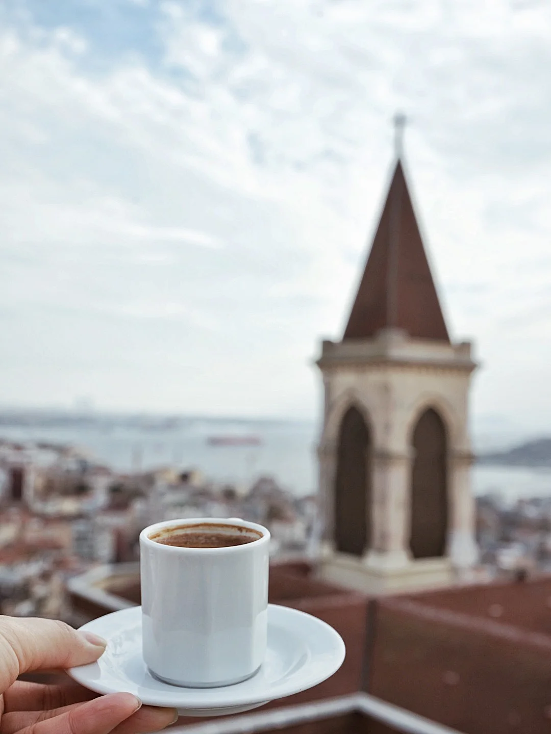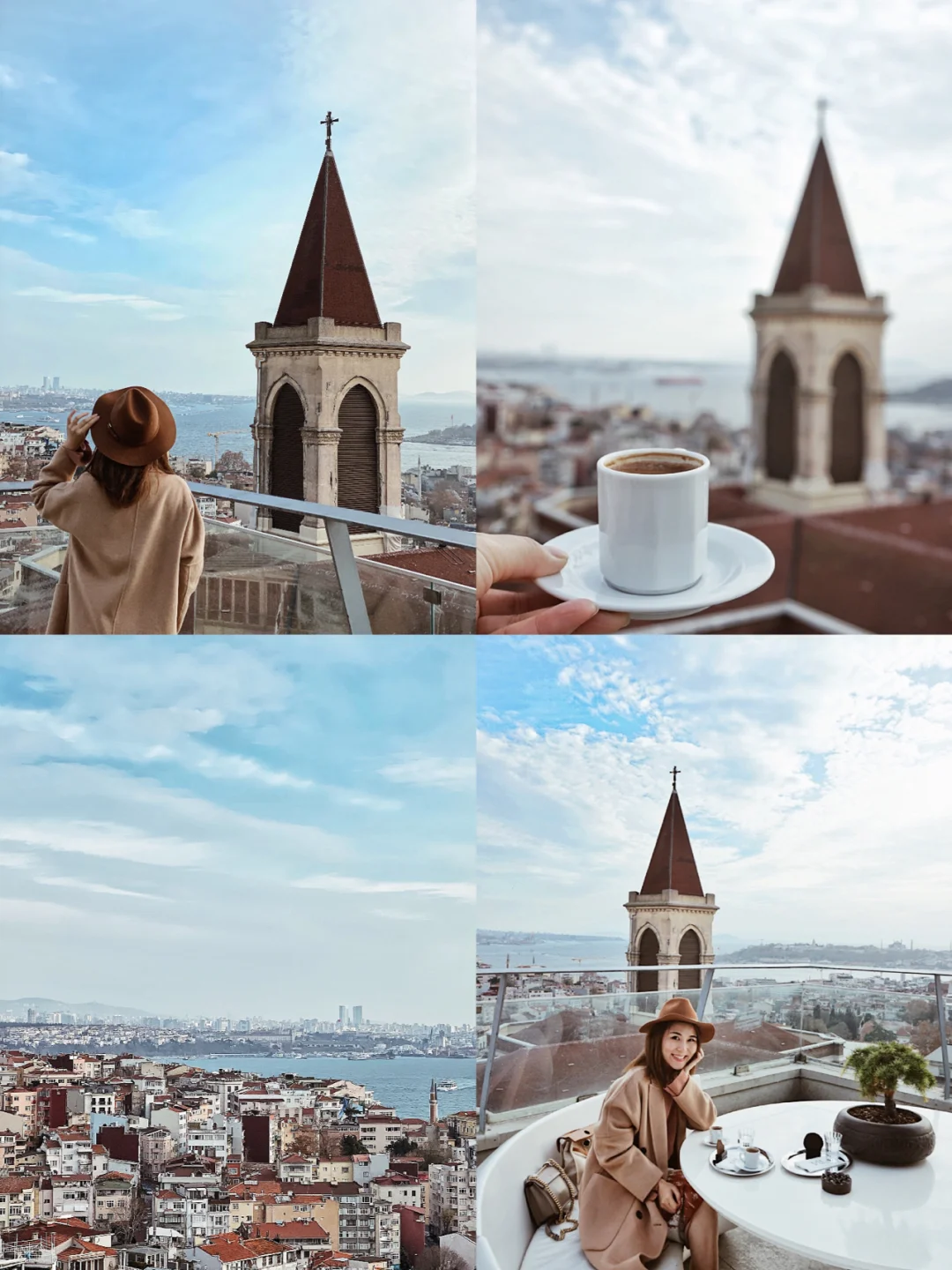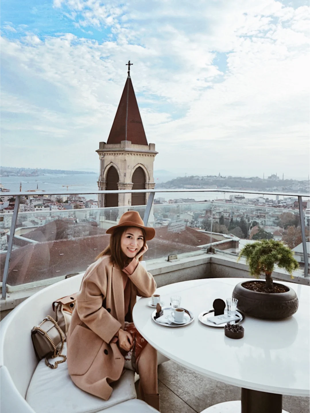 🍴360 Istanbul 📍Tomtom Mahallesi İstiklal Caddesi Mısır Apartmanı No:163; Kat:8 Beyoğlu İstanbul (在独立大街上) ⌚️下午2点才开始营业 . ☪️【关于餐厅】 . 360 Istanbul,顾名思义就是景观360度的餐厅,从天台可以看到the Bosphorus(博斯普鲁斯海峡)The Sea of Marmara(马尔马拉海)The St. Antoine Church (圣安多尼教堂)and The Hagia Sophia(圣索非亚大教堂),打卡拍照一流。 据说还有世界顶级DJ驻店(然而我并非夜晚前晚,不好评价真实水平如何)。餐厅位于伊斯坦布尔最繁华的商业大街独立大街上,在BEYOĞLU区(贝伊奥卢区)。By the way, 这个区有很多美美的餐厅和打卡点。比如彩虹🌈伞街,Galata tower(加拉太塔),最好的土耳其浴Kilic Ali Paşa Hamam. . ☪️【关于食物】 因为Google上显示12点开门,我们12点前往却得知2点才开门,于是我们饥肠辘辘的我们便在街头解决了吃饭问题。回去餐厅的时候大致看了下菜单,提供土耳其菜和多国菜,算是fusion的餐厅。喝了在土国的第一杯Turkish coffee,有点像Americano, 但更浓郁以及顺滑。 . ☪️为了这个heart stopping的景,真的很值得!