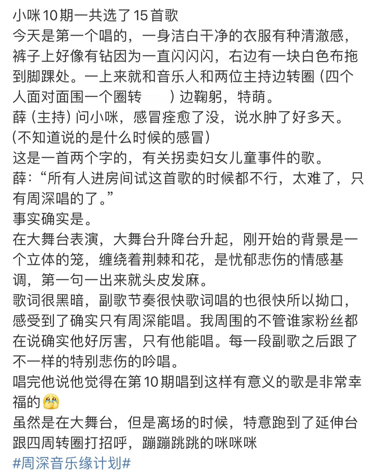 因为昨天的一些节目录制repo,粉丝得知周深感冒生病了很担心。没想到周深半夜上线评论了几天前的微博来报平安:“大家不用担心我哈,我很好滴哈,大家多意休息哦。” 🥹🥹周深上线报平安让粉丝不要担心