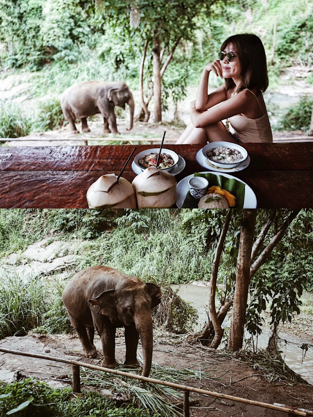 🐘另外,reception前的cafe也可以看大象,用餐后还会有香蕉赠送,可以喂大象哦,大象还吃新鲜的椰子🥥