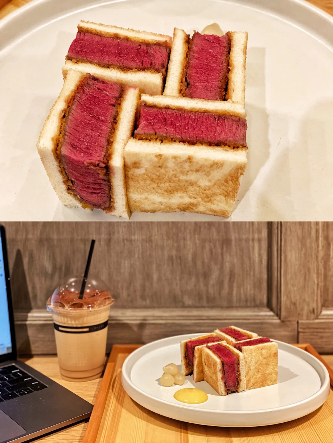 🇭🇰☕️废话一堆后,重点来了‼️‼️‼️期间限定的吉列和牛三文治是和Sando Bā合作,外面的面包🍞松软可口,皮有点脆脆的,很香。而和牛肉厚多汁,沾着Mustard,真的非常美味,吃完一天的心情都被点亮✨🌟再加上ice cappuccino,发泡的可可粉,真的觉得周日应该这样才是一个漂亮的开始。
