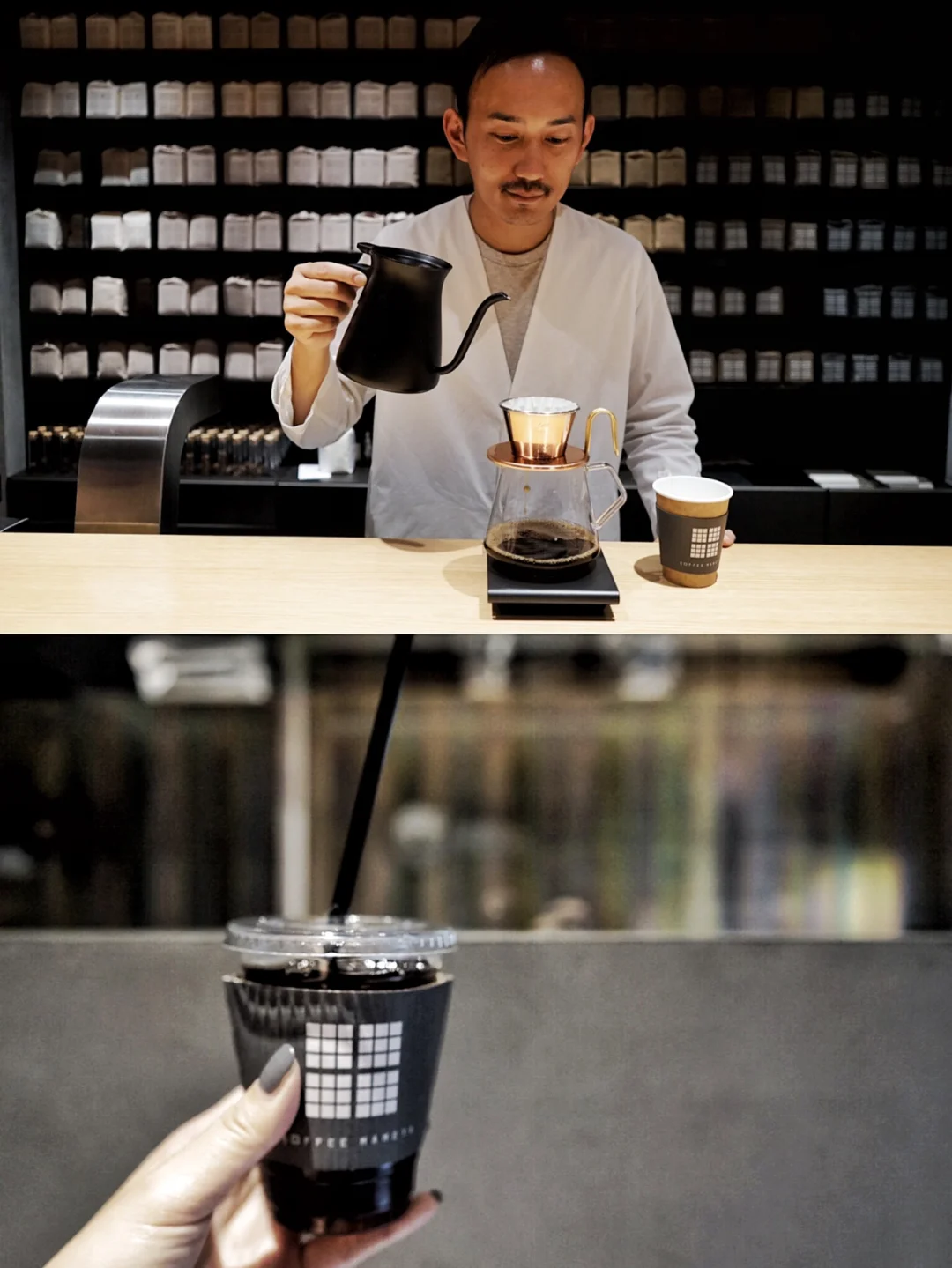 🇯🇵☕️黑灰和原木色调,只有一个咖啡台,安静地看咖啡师做一杯咖啡,然后聊聊天,说起香港这家我最爱的咖啡店,还闻了各种各样的咖啡豆,按照烘培的程度,包装的颜色深浅也有不同的排列。买了豆之后附上一份“咖啡豆处方纸”咖师会亲手写上冲泡方法,包括水量,研磨的粗细程度等。也会细心考虑到客人的器材限制,让你在家也能轻松享用好咖啡☕️