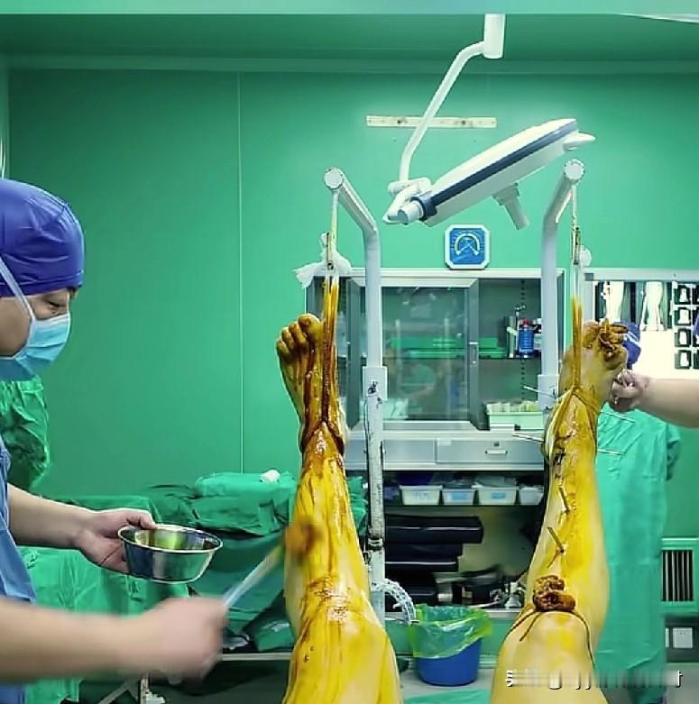 天哪!第一次看到,这么恐怖的画面!知道的,是骨科医生正在给做手术的患者,做腿部的消毒! 不知道的,还以为他们给人上酷刑呢!文案是,这两条腿应该是它最干净的一次了!有网友在评论区,上网图了!看到图后,心里很不是滋味!这两张图,有惊人的相似! 它们的不同就是,一个是有生命力的高级动物,另一个是失去生命的养殖动物!不管咋说,这两个画面对视觉的冲击力,还是很震憾的!友友怎么说?