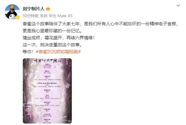 刘宁制片人决定重启香蜜年度仙侠白月光重磅回归!陨丹碎、凤凰燃,三世虐恋再续前缘,