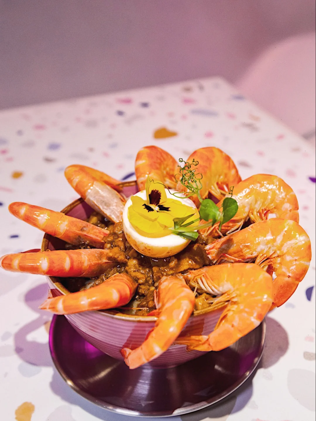 🌸食物出品也是年轻女生会喜欢的。每种食物都用食用花做点缀。其中几款是店内最受欢迎的: