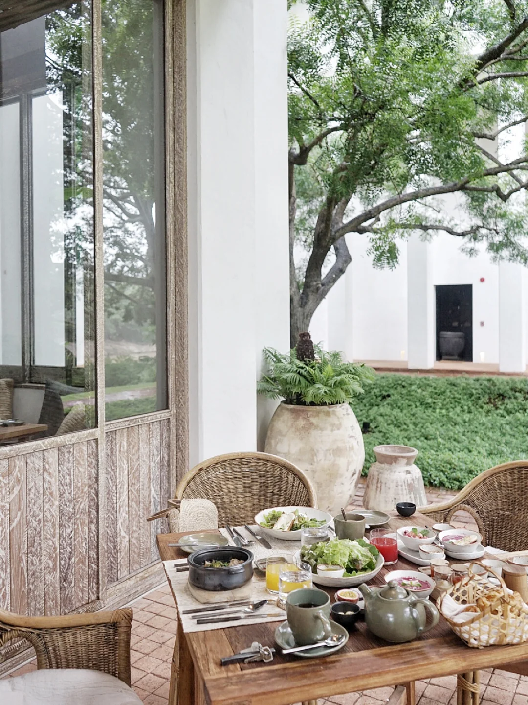 ⚪️⚫️餐厅🍴Khu Khao:我们试过晚餐,一个字:辣🌶️🌶️服务员说a little bit spicy 原来是无敌辣。但喜欢辣的朋友应该会觉得味道还不错。早餐是order式的自助,选择也很多。记得选择户外位置,拍照angle最好。By the way, 餐厅最显眼的便是一顶顶竹篓,原来Khu Khao就是竹篓的意思,体现了泰国北部的传统稻米文化。